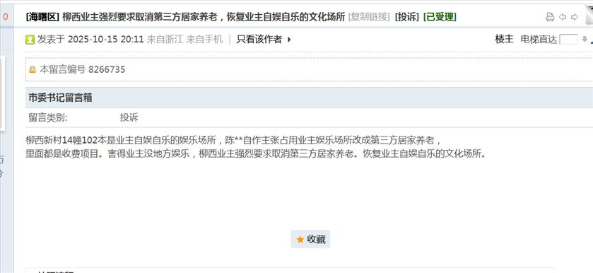 2022年9月26日,陈X平向柳x新村居民发放《告知书》,称因对柳X新村围墙进行维修加固,故要对灌木进行修剪等。由于是对灌木进行修剪,故居民没有反对。然后11-12月期间,施工队对西侧围墙旁的树木进行大肆砍伐,总计砍伐树木达41棵,这些树木都是小区建成之初种植的,树龄几近30年,直径在10-20厘米不等,最大的一颗直径有64厘米,小区居民对此大为震惊和愤怒。于是本人在2023年2月22日以书面形式实名举报柳x新村41棵大树被砍伐,,到现在2025年了都没有处理负责人,也没有赔偿给业主,真是令人气愤! 二、环境差 柳X小区自从改造引进物业,绿化破坏严重,绿花丛丛树叶有一手厚,挖开烂树叶下面小虫密密多,由于改造水管粪管没有更换,导致业主由于堵塞只好私接粪管,现在小区粪水流得到处都是,石石臭。陈某某热衷于做工程,对小区事物漠不关心,还设局解散业委会,物业抱怨没钱赚也不管小区,导致柳西小区污水横流,臭气熏天 三、车棚改棋牌室 陈某平把小区唯一老年图书馆和棋牌室重新装修(既没有公示告知居民又不招标),并分成三部分分别租给1.第三方居家养老,2.物业办公,3.自治站办公室。那么老年人的棋牌室被她搞没了,没有活动场所了,于是陈X平把14幢某车棚改作棋牌室给老年人做棋牌室。 要求把原来设立在14幢102的老年协会棋牌室恢复,居家养老点另寻他处,不能让居家养老鸠占鹊巢占用老年人的活动场所,老年人棋牌也不需要去车棚了(国家明文规定车棚不能作棋牌室) 四、不是业主却来管理小区 陈某某设立自治站,让一帮根本不是业主的外来人来管理小区,把业主共有资金随意支配给物业使用(业委会才能管理业主共有财产),手伸的很长。 五、物业管理混乱 1.柳X小区旧改后明明可以封闭管理,现在四通八达只要是人都可进入小区,曾经有人三次把地沟油到入小区,是业主举报才抓住,而放他们进来的物业还奖励1000元,这波神操作就是柳x自治站负责人姚**、郁**所为(这2个人都不是柳X的业主,也没有经过选举),既然陈*平成立自治站,那么是不是应该把小区管理好,而不是随意指定自治站的人胡乱管理小区。 2.小区夜班东门物业无人值班已有将近一年,小区墙上还写着看好自己的门,难道是这样看门吗?听说无人驾驶汽车,还有无人看门物业。真是很奇葩! 3.物业在没有业委会授权下,私自上涨停车费100元,本身就是老小区,经济也不宽裕,怎么能随意上涨费用。 六、业委会选聘乱象,新业委会主任每天挖空心思问业主要钱,涉嫌协助物业白条套取维修基金 柳X新村公告重新选举业委会,这次选业委会居然采用指定5个人选5个人的方式,才选出了周XX当业委会主任,结果每天挖空心思问业主要钱,涉嫌协助物业白条套取维修基金 |