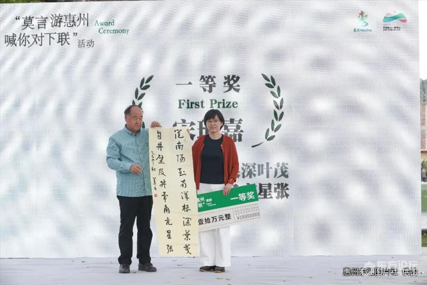 “从南阳到南洋根深叶茂” “自井壁及井毕角亢星张” 10月21日,话题#00后对出莫言的上联独得10万元奖金#登上热搜,引发广泛关注。 ![]() 今年6月,诺贝尔文学奖获得者莫言在广东惠州惠阳区秋长街道周田村,面对百年客家围屋碧滟楼,有感而发,写下“从南阳到南洋根深叶茂”十字上联,并发出“向天下文友敬求下联”之邀。 ![]() 10月20日,该征集活动获奖名单揭晓。其中,独得一等奖,并收获10万元奖金的作者宋珂嘉是一名21岁的年轻人。他对出的下联为“自井壁及井毕角亢星张”。 现场视频显示,北京师范大学终身特聘教授、著名诗人欧阳江河对一等奖作品进行了解读,表示这是“多年难遇的绝对”,当他得知这副对联出自学生之手时,感到十分震惊。 ![]() 该奖项由作者母亲代领。宋母表示,来领奖之前,孩子特别嘱咐,要把奖金的一半捐给“莫言同心”公益项目,用作先心病儿童的救治,“要把幸运和温暖传递出去”。 ![]() ![]() ![]() ![]() 网友评论 据了解,莫言所出上联中的“南阳”源于惠州叶姓家族来自河南南阳,其堂号为“南阳堂”,而“南洋”是说叶亚来下南洋到吉隆坡发展成就大业,“叶”指的是叶氏家族。 “南阳”与“南洋”是完全同音的一对平声字,但“阳”与“洋”同音不同字,“根深叶茂”形容叶姓家族从河南南阳到广东惠州,再到吉隆坡之繁茂昌隆的状态,也象征中华文化的根系之深与影响之广。 莫言上联平仄为“平平平仄平平平平仄仄”,下联征集要求对仗工整,平仄协调即“仄仄仄平仄仄仄仄平平”。 另据羊城晚报报道,有网友晒出了《叶氏族谱汇编第三册(惠阳县部分)》记载内容,科普莫言上联深层次的文化背景—— 除一等奖外,主办方也评出二等奖两名、三等奖3名。 二等奖(2名) 以客语通客域惠重吉隆 (作者:杨卫东) 以大智开大治桂馥兰薰 (作者:师前) 三等奖(3名) 在惠市书惠史业盛州兴 (作者:任杰) 自古井思古景水润苏荣 (作者:陈玲玲) 顺大势成大事惠广泽长 (作者:曾立安) 试试看 你能想出一个工整的下联吗? |