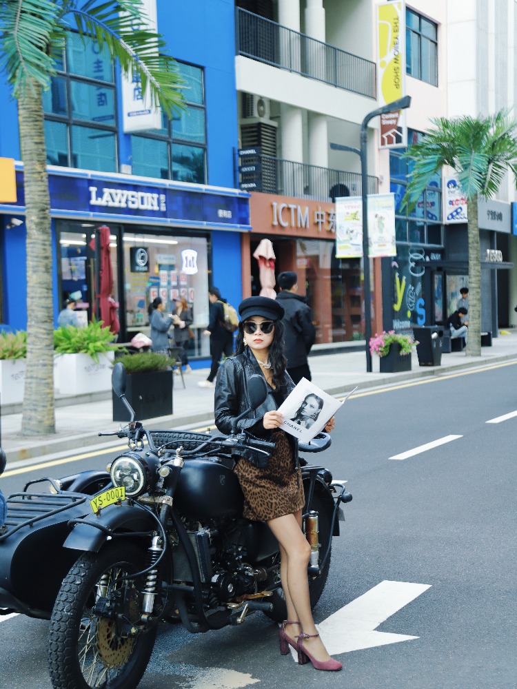 热门机位:街口标志牌、小黄车、复古摩托车、白色楼梯、涂鸦墙等
