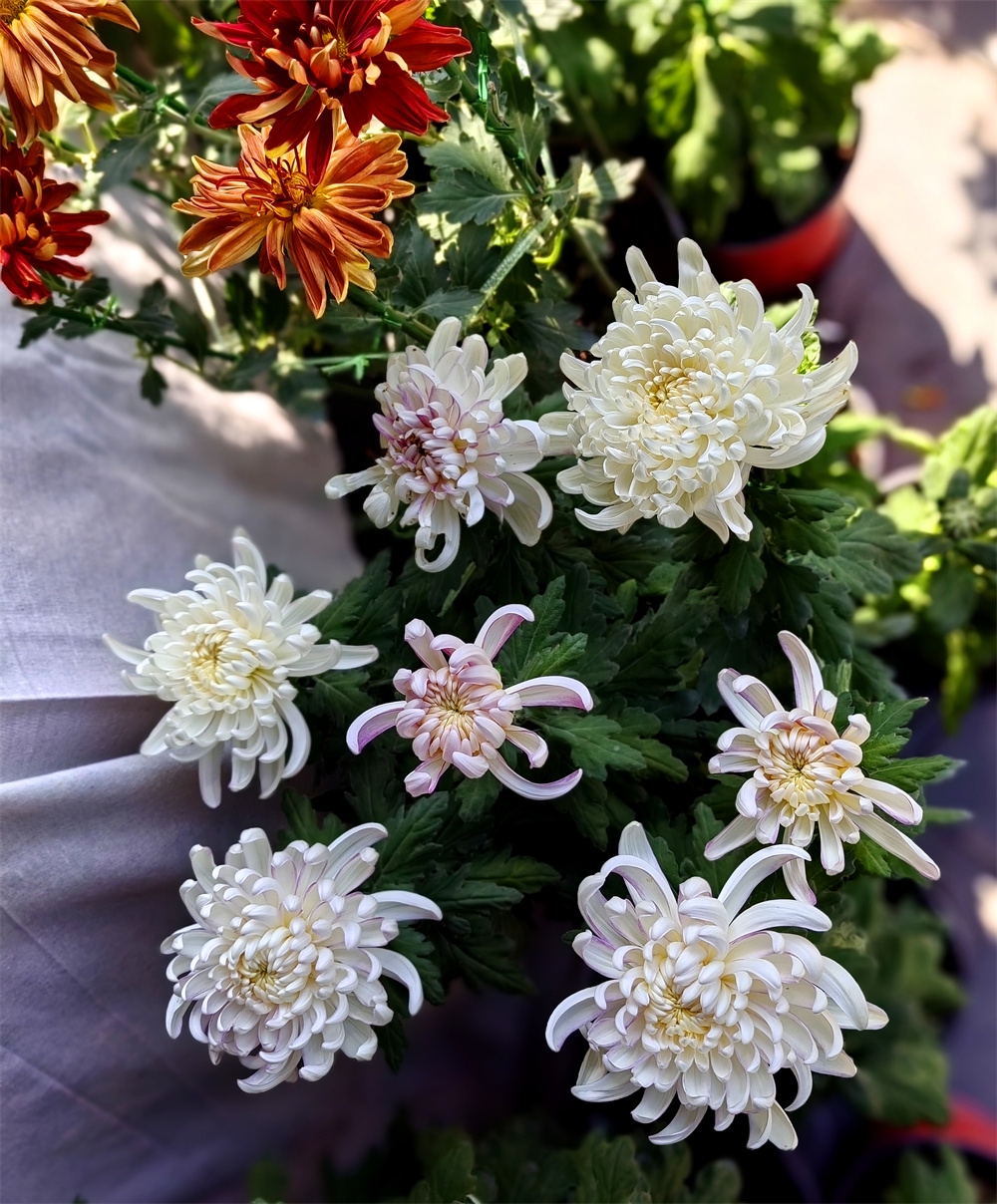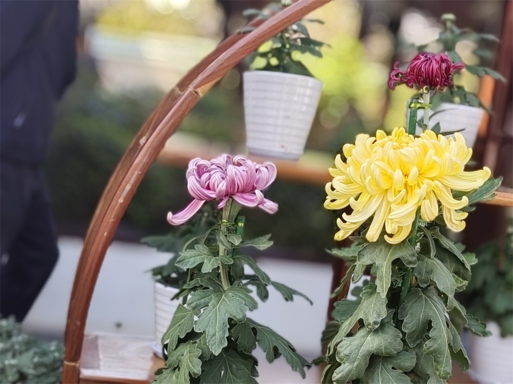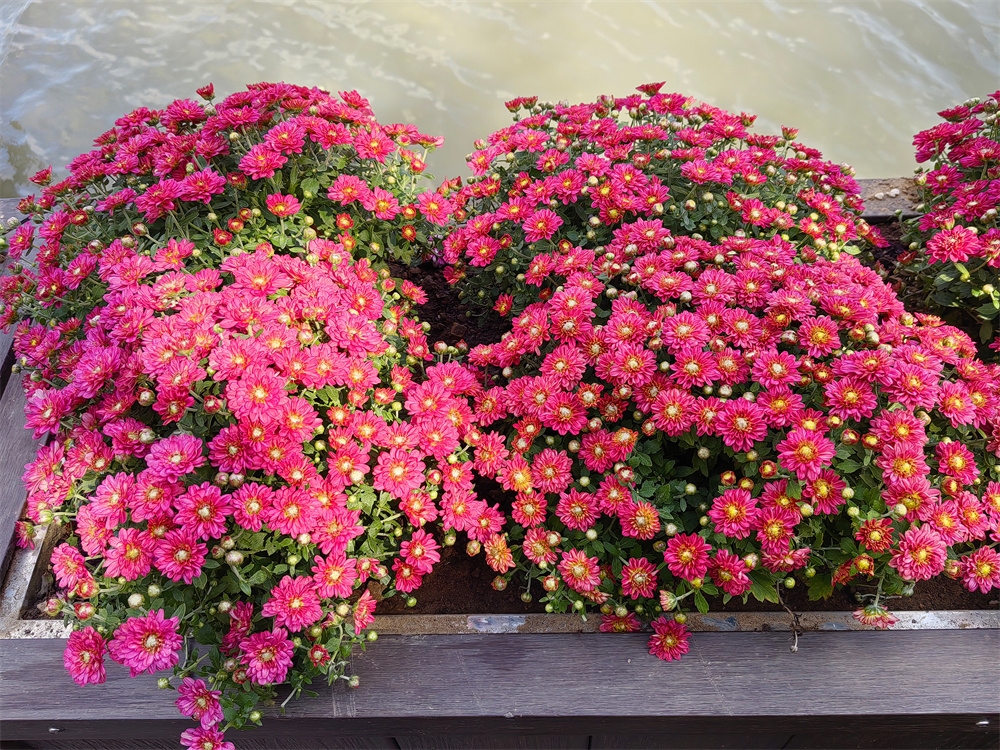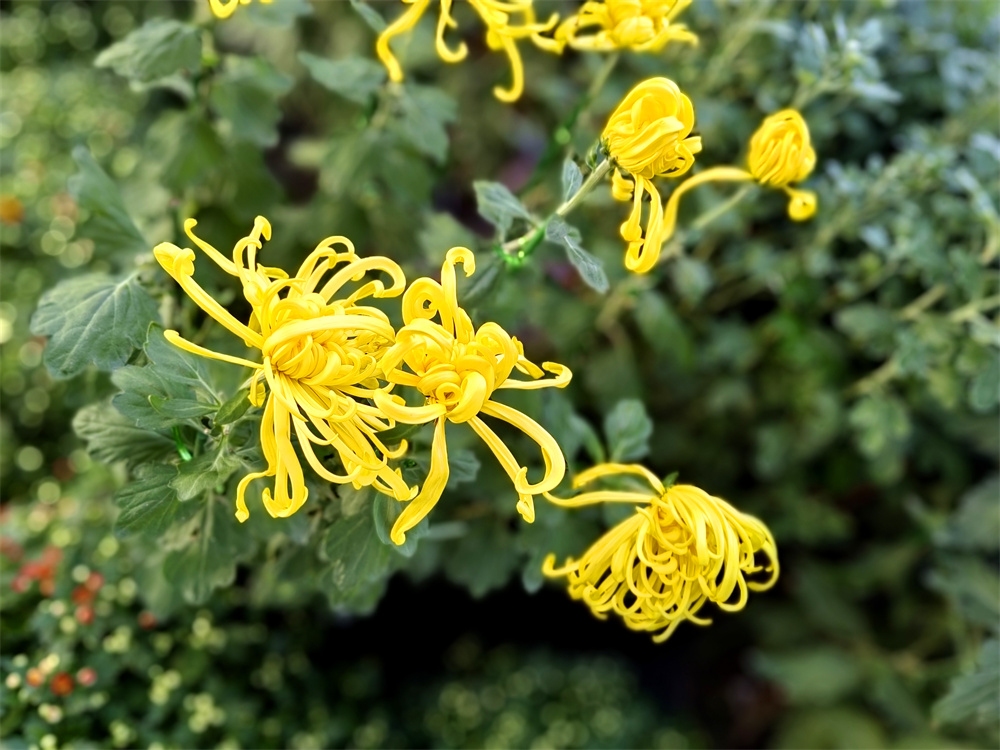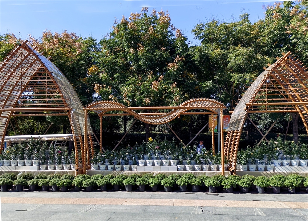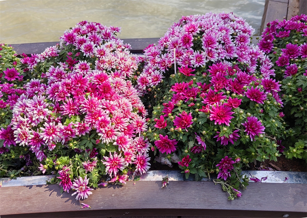 今天天气很好,风和日丽,秋高气爽。我和邻居杨先生一道到宁波植物园看菊展。可是菊展看了之后有失望的感觉。一是菊花大多数尚未开放,盛开了的不足百分之五,许多花蕾仅一角硬币那么大,甚至更小;花蕾稍为大一点的也仅仅是含苞待放,没有达到观赏的效果,没有美感。二是觉得宁波植物园今年的菊展,不但总体的数量少,精品菊花也不如往年的多。往年兰园外面的小路两边摆满了菊花,今年只摆了一边,还稀稀拉拉,有的路段干脆就是空白;兰园外的大路上,以前几年搭了好多台子,盆菊摆得层层叠叠、满满当当,今年那些台子不见了,地面上平平的铺了一些盆菊,与前几年相比逊色多了。不知道是今年是因为菊展的财政拨款欠多?还是因为组织工作没有做好?还是因为园林工人偷懒了?