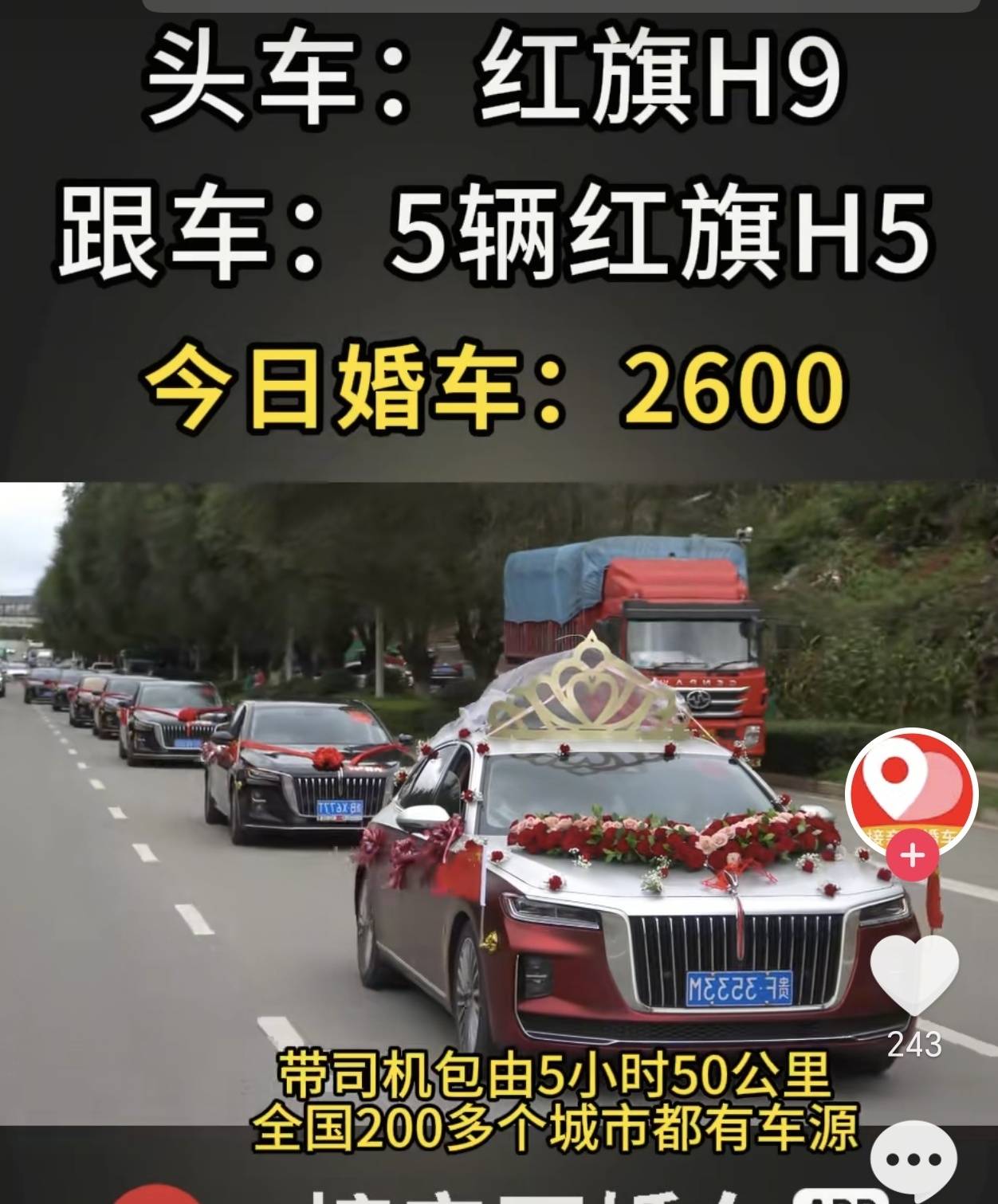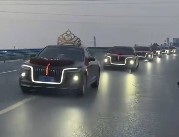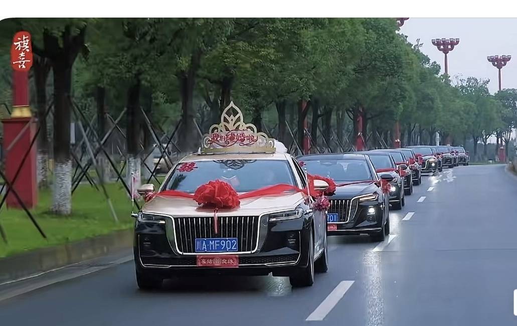 网上搜了一下红旗婚车队,就这么霸气!一点不输宝马奔驰婚车队。
