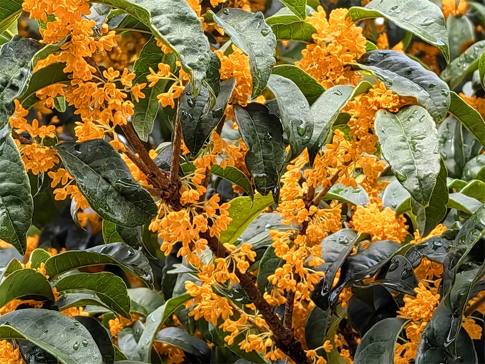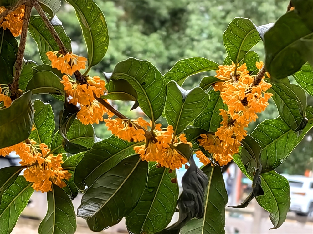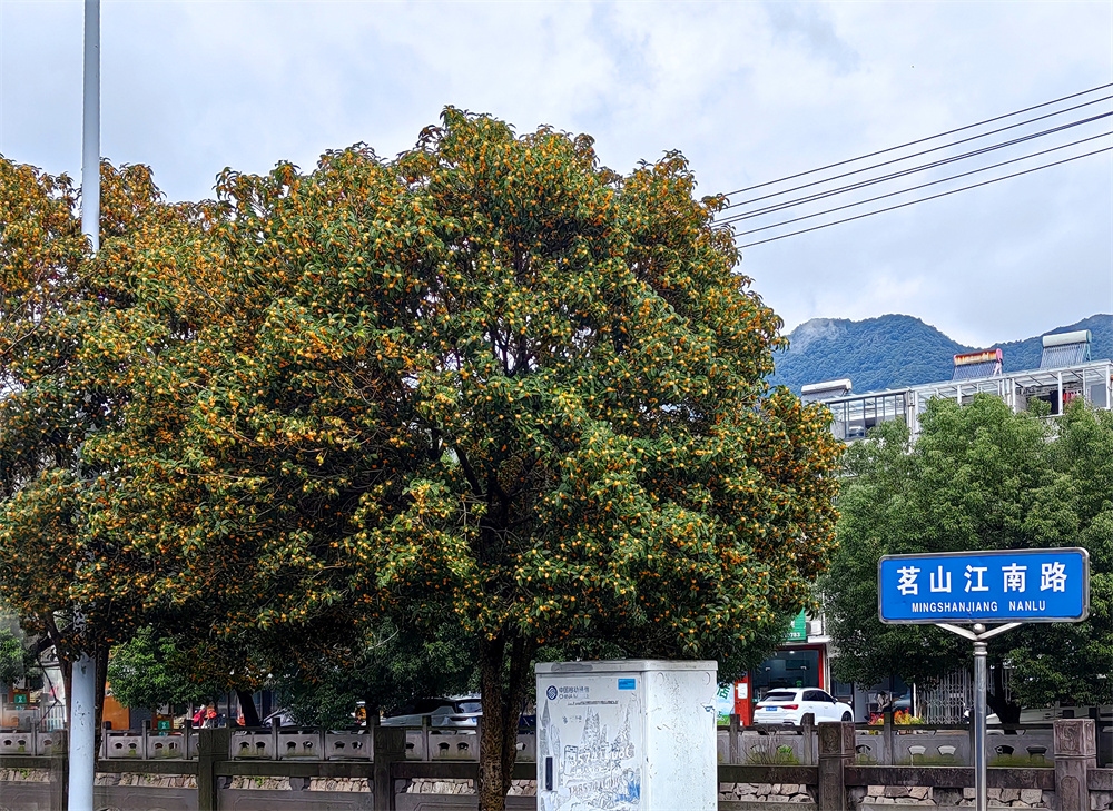 奉化溪口茗山江南路的西段,有80多株桂花树,近日桂花开了,在此路段经过,一路上桂花散发的浓郁香气扑面而来沁人肺腑。
