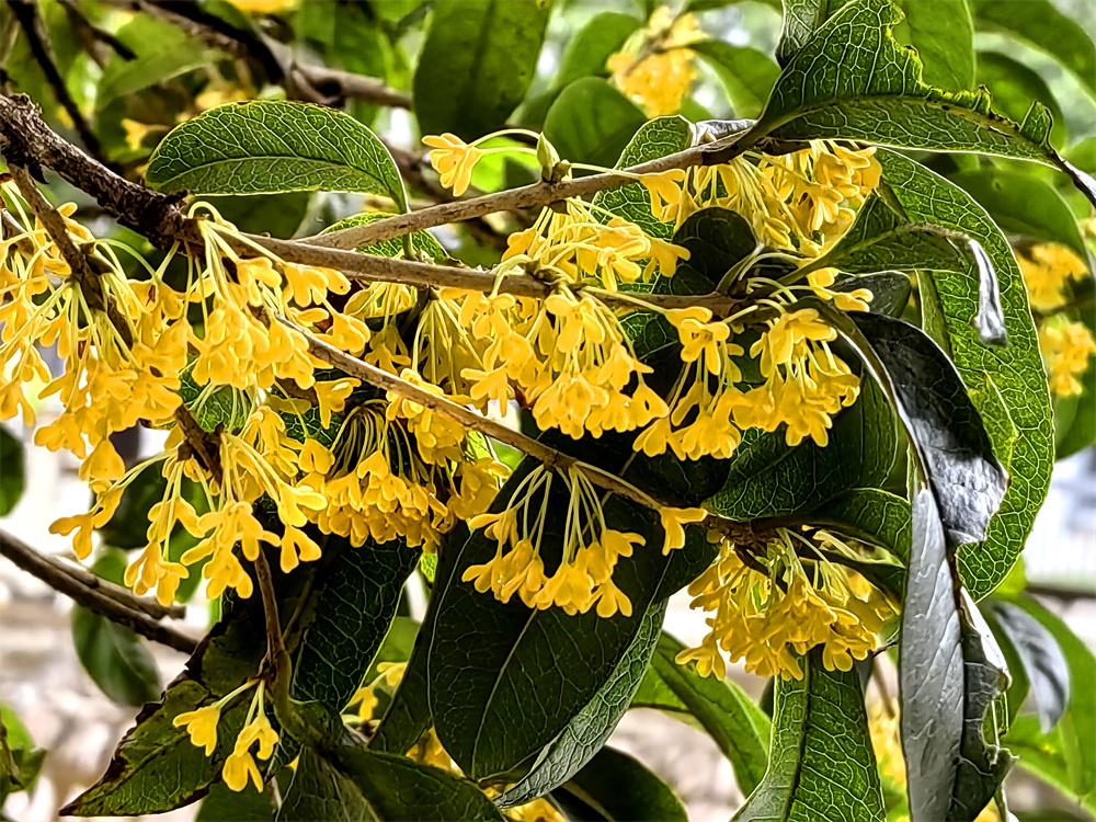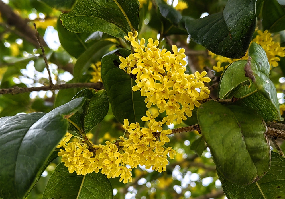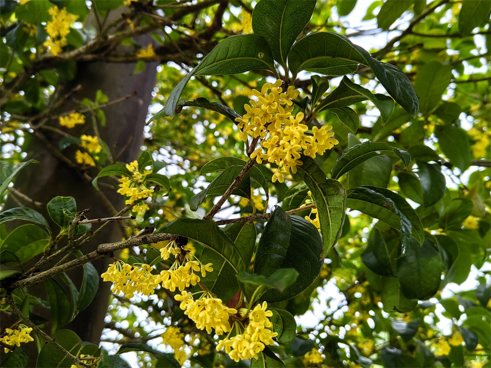 那里的桂花树多数是淡黄色的“银桂”,也有几株金黄色的“金桂”金桂