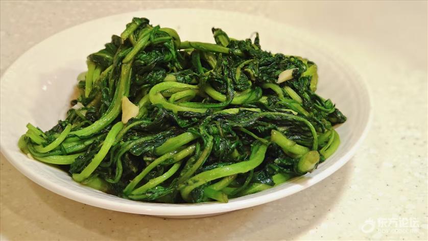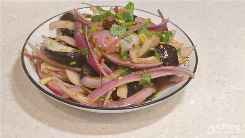 二个素菜。生洋葱拌黑木耳,蒜泥炒好菜