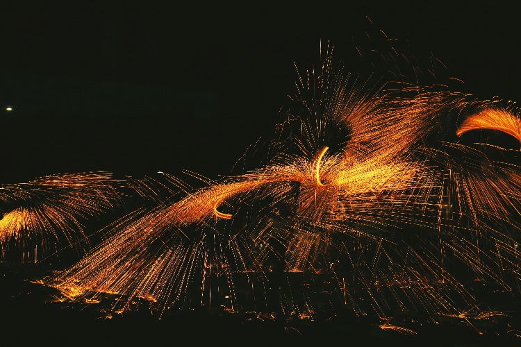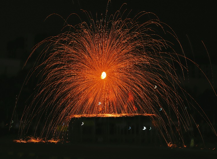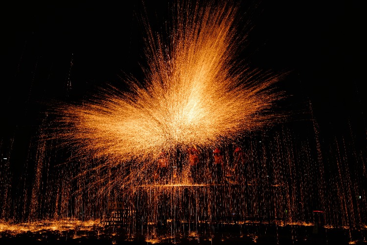铁水泼洒的刹那,夜空被烫出光的裂缝,仿佛天神以熔金为墨挥毫泼洒;水袖舒展的轨迹,寂静被舞出风的形状,恰似古人以肢体为笔书写春秋。