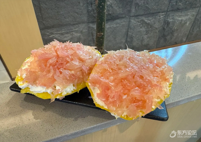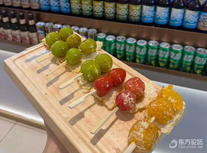 刚入座服务员就端来新品,冰糖葫芦+固体杨枝甘露的组合,,外壳脆生生的不粘牙,里面的水果新鲜多汁,酸甜口刚好开开胃,比外面买的还实在!