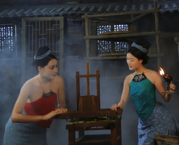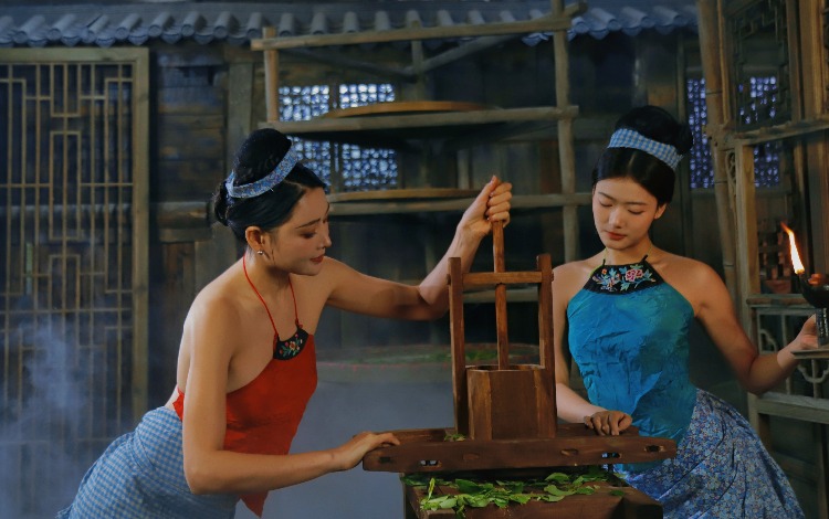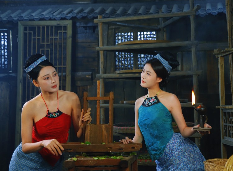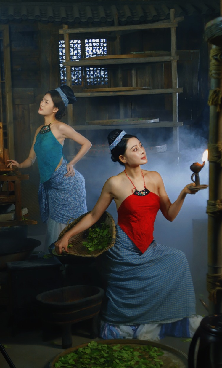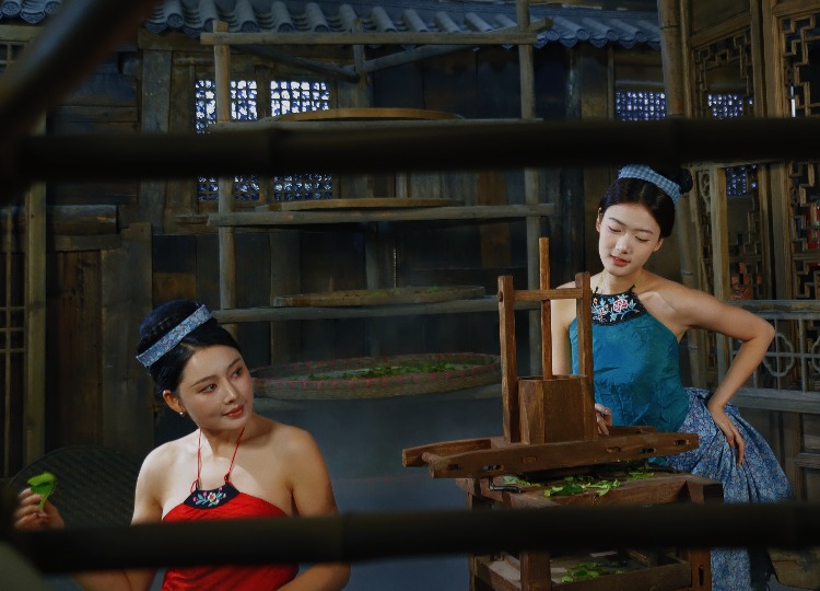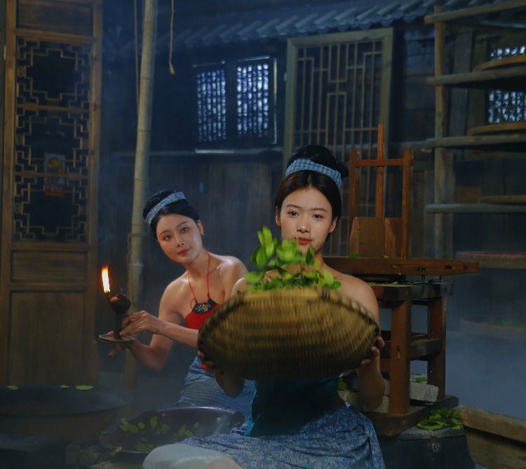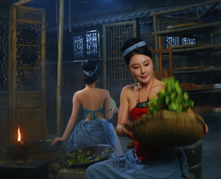 在茶烟的氤氲中,茶女眉目低垂,茶汤流转处,映照出千年文化的沉淀。