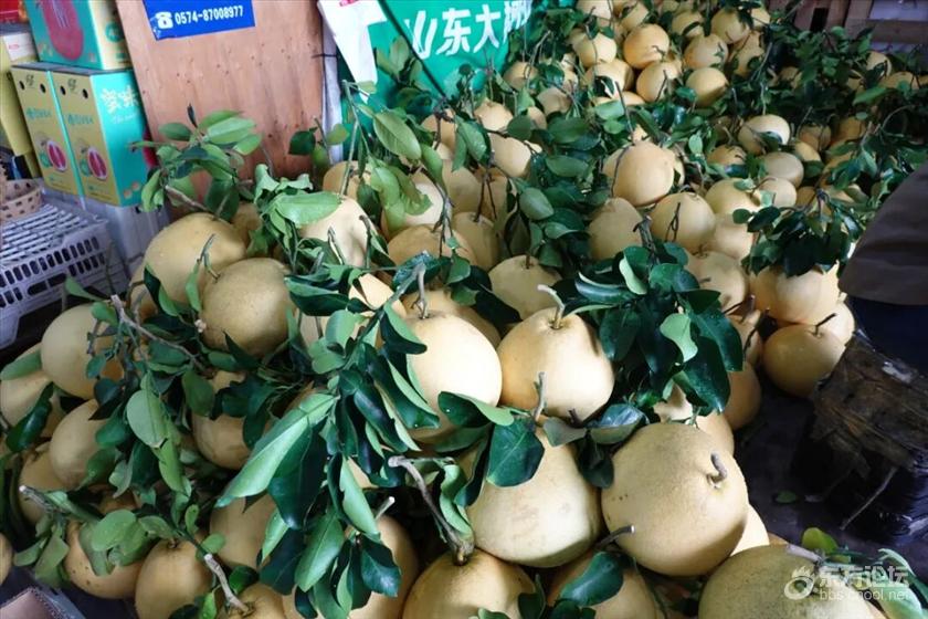 随着秋冬时令水果消费旺季到来 在宁波果品批发市场内 柚类水果成为主角 玉环文旦、三红柚、葡萄柚等品种热销 ↓ 据宁波果品批发市场2044号摊位老板陈肖介绍,作为苏浙地区的特色柚子品种,玉环文旦于10月20日左右进入市场,眼下已开始大规模上市。