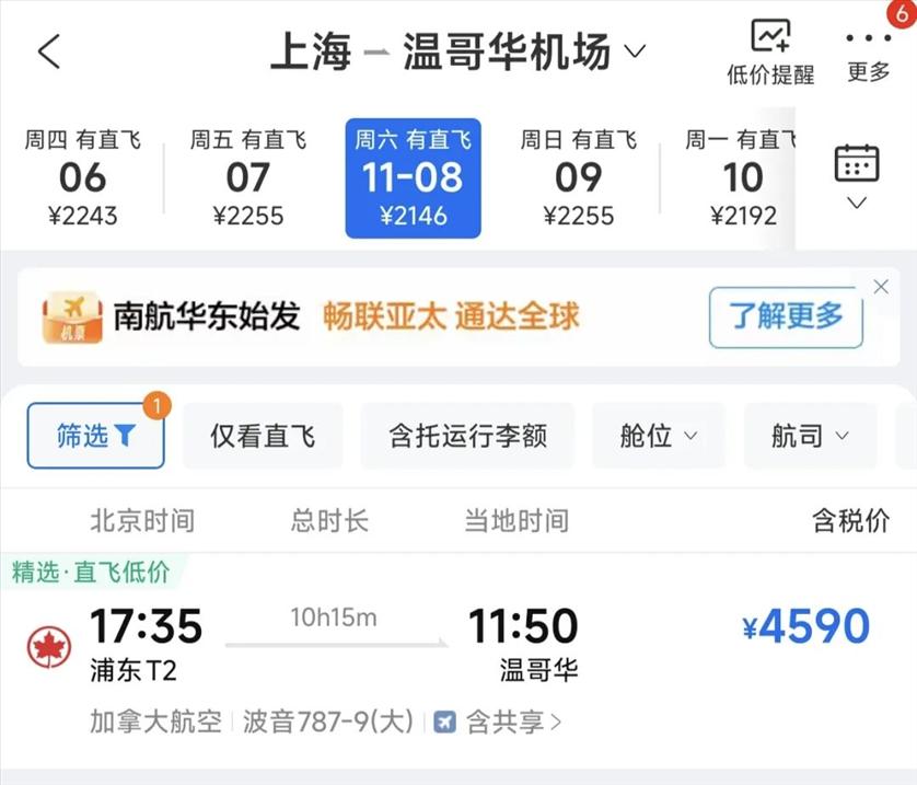 11月4日,国务院办公厅发布关于2026年部分节假日安排的通知,其中,2026年春节假期共连休9天,成为“史上最长”春节。 相关报道:好消息!春节连放9天!还有请3休13天! ![]() 消息一经发布便点燃了旅游市场,尤其利好长线旅游。在某知名旅行App上,上述消息发出不到半小时,平台上元旦期间的火车票、春节期间的火车票和国际机票搜索量瞬时增长翻倍,且仍在冲高,春节期间出发的机票搜索量瞬时增长3倍。 另一家旅行平台上,2026年2月14日和15日的国内机票和酒店搜索量较前一日增长超1倍。此外,某旅游平台的春节欧洲游咨询量环比暴涨了200%,希腊、挪威、冰岛、塞尔维亚、西班牙、英国等热门欧洲目的地的搜索量翻倍,预计2026年春节欧洲游订单量会有新的突破。 某知名旅行公司相关负责人表示,目前已有心急的旅客下单,其中有上海、北京、广州、哈尔滨的旅客订购了春节前夕出发的机票,国内热门目的地包括海口、三亚、杭州等,出境游热门目的地包括中国香港、韩国首尔、日本东京等。有旅客2月15日一早从大阪飞上海,有旅客从常州飞到香港,也有旅客预订了2月14日晚从广州飞到新加坡的机票。 多出一天,也将刺激更多出行。从已预订的机票量来看,2026年春节出行的机票量同比2025年增长63%。从搜索量来看,春节期间国内游搜索热度较高的城市依然是三亚、大理、哈尔滨、海口、西双版纳等旅游城市,出境游目的地热度增长较明显的是德国柏林、韩国釜山和澳大利亚墨尔本。 某旅行平台大数据研究院分析,史上最长春节假期,有利于大家错峰分散出行,节中出游群体预计也会增加。单日客流量会更平衡,旅客出游也较舒适。春节整体出行和出游量有望创新高。 对于“史上最长”春节,旅游从业人员也表现出较大的兴奋。某旅游公司副总经理告诉记者,截至当天19时,春秋旅游产品部门和销售部门的同事都在紧急加班中,假期为旅游市场带来的撬动力,会从产品的丰富度、性价比和品质把控等多方面协同考虑,因此还将对很多产品的深度和广度再做进一步挖掘,更好满足元旦和春节等具有特殊意义的节假日出游需求。 中国公民赴加拿大团队游恢复机票搜索量暴增 近日 中国外交部宣布 综合考虑中国游客出境需求、 当地旅游环境等各方面情况 中方决定恢复旅行社 经营中国公民赴加拿大团队游业务 ![]() 有业内人士表示,加拿大团队游时隔五年重启,将进一步完善北美等区域的旅游目的地矩阵。目前,相关企业已开展系列准备工作,重点围绕定制小团游方向进行产品研发,如果一切进展顺利,重启后首批旅游团队有望在寒假春节时出发。 ![]() 去哪儿旅行数据显示 消息发出半小时内 平台上前往加拿大多个城市的机票 搜索量有大幅提升 其中 前往多伦多机票搜索量同比增长61% 前往蒙特利尔搜索量增长223% 前往渥太华搜索量增长137% ![]() 在旅游平台搜索发现 从上海到加拿大温哥华 每天都有直飞航班 单程直飞的价格在4600元左右 (飞行时间约10小时) 转机的价格更为实惠 在2700元左右 (飞行时间约17~19小时) ![]() ![]() 记者从多家旅行社获悉 旅行社已在紧锣密鼓筹备 和上线相关产品 有旅行社告诉记者,产品一经上线,多条路线报名踊跃,所有线路呈现出团团爆满的态势。有负责人介绍,首发团产品上线仅半个多小时,14个位置已经留位满了。