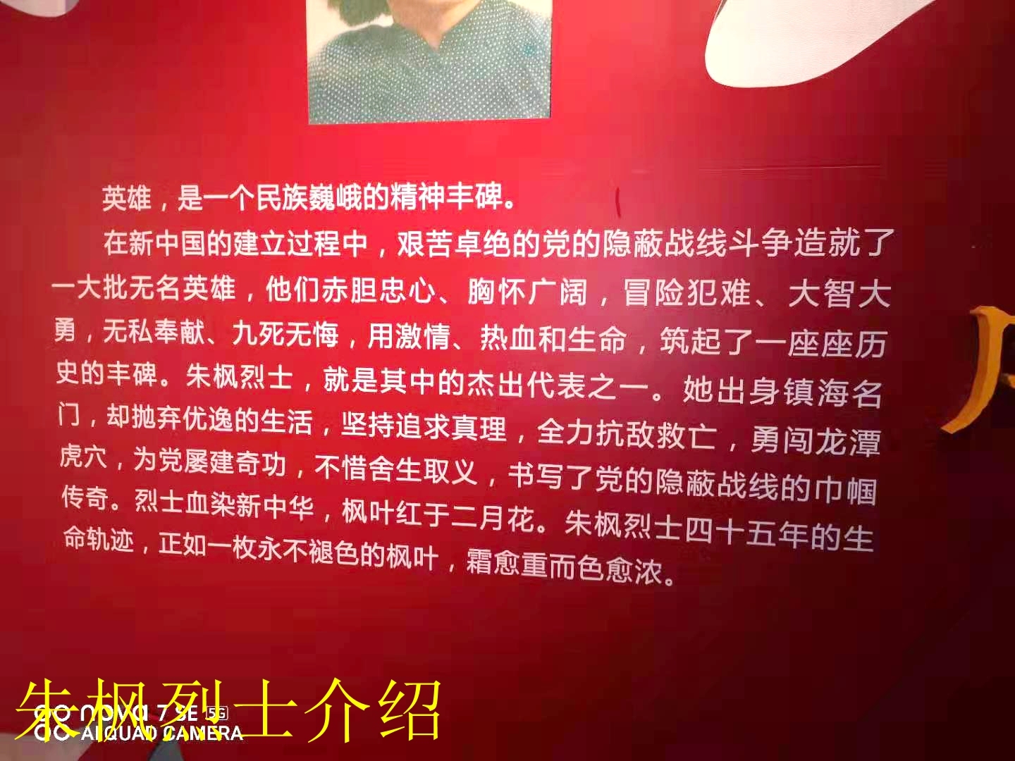 特地乘车到镇海,拜仰朱枫静默哀。感人事迹催人泪,革命烈士永存在。