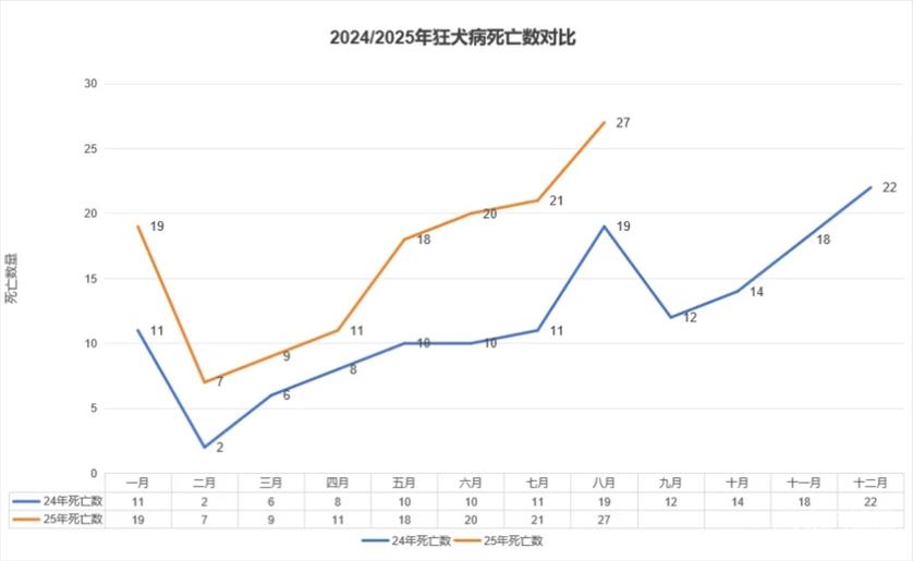 根据中国疾病控制中心的官方数据,2023年狂犬病发病人数122例,2024年这个数据突然反弹,达到186例!这是我国狂犬病连续17年下降后的首次上升! 这可能和宠物数量增加、流浪狗管理不足,以及部分偏远地区暴露后处置不规范有关。 插个题外话 我发现养狗这个事情损伤听力 不信你们跑到公园里看到遛狗不拴绳的,大声让他把绳子牵好 10个遛狗的10个听不见