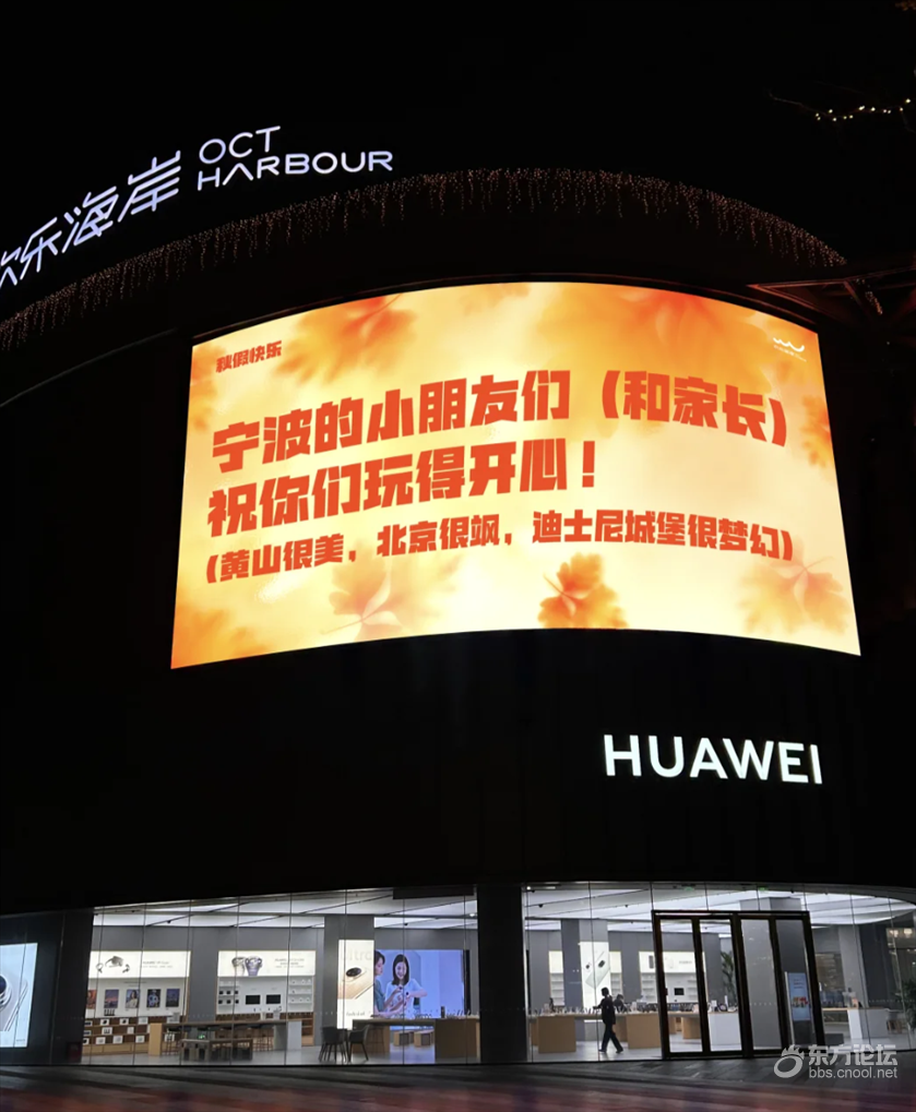 宁波开始了秋假,宁波欢乐海岸的大屏幕也开始祝愿大家了,不过说实话,今年没想到北京、黄山成了浙B秋游热门景点。