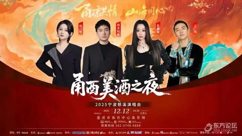 12月12日 “甬凉共情 山海同心” 甬酉美酒之夜2025宁波慈溪演唱会 将在慈溪市体育中心体育场举行 ![]() 张靓颖、海来阿木、王琪、程响 四位实力唱将 将共同唱响甬凉情 张靓颖 ![]() 从《超级女声》到国际舞台,她兼具力量与细腻的嗓音,既能驾驭史诗级高音,也能在低吟浅唱中直击人心,无论是《如果这就是爱情》里的深情婉转,还是《终于等到你》中的温暖坚定,都能点燃全场的气氛。 海来阿木 ![]() 从货车司机到现象级音乐人,海来阿木用《不如见一面》《不过人间》等作品,让听众在旋律中找到心灵的慰藉。他的声音自带故事感,沙哑中透着温情,仿佛大凉山的晚风,裹挟着生活的酸甜苦辣。 王琪 ![]() 他是《可可托海的牧羊人》的原创者,用质朴的歌词和悠扬的旋律,将草原的辽阔与爱情的凄美娓娓道来。他的歌声藏着对故乡的眷恋,对生活的热爱,每一句都唱进人心最柔软的角落。 程响 ![]() 她的嗓音清澈透亮,无论是《等你归来》的温柔期盼,《人间烟火》的市井温情,还是《世界那么大还是遇见你》的清风拂面,总能让人慢下来感受生活的诗意。 购票&文旅福利 本次演唱会门票可通过大麦网、猫眼演出、抖音等平台购买。购票时可使用“宁波文旅消费券”,具体领取方式及使用规则如下: 活动期间,用户可通过“大麦APP或大麦微信小程序”,在参与活动的宁波演出详情页领取“剧目消费券”,优惠券类型为“演出门票满减券”。满100减25元、满200减50元、满300减75元、满400减100元、满500减125元,优惠券数量有限,先到先得。 |