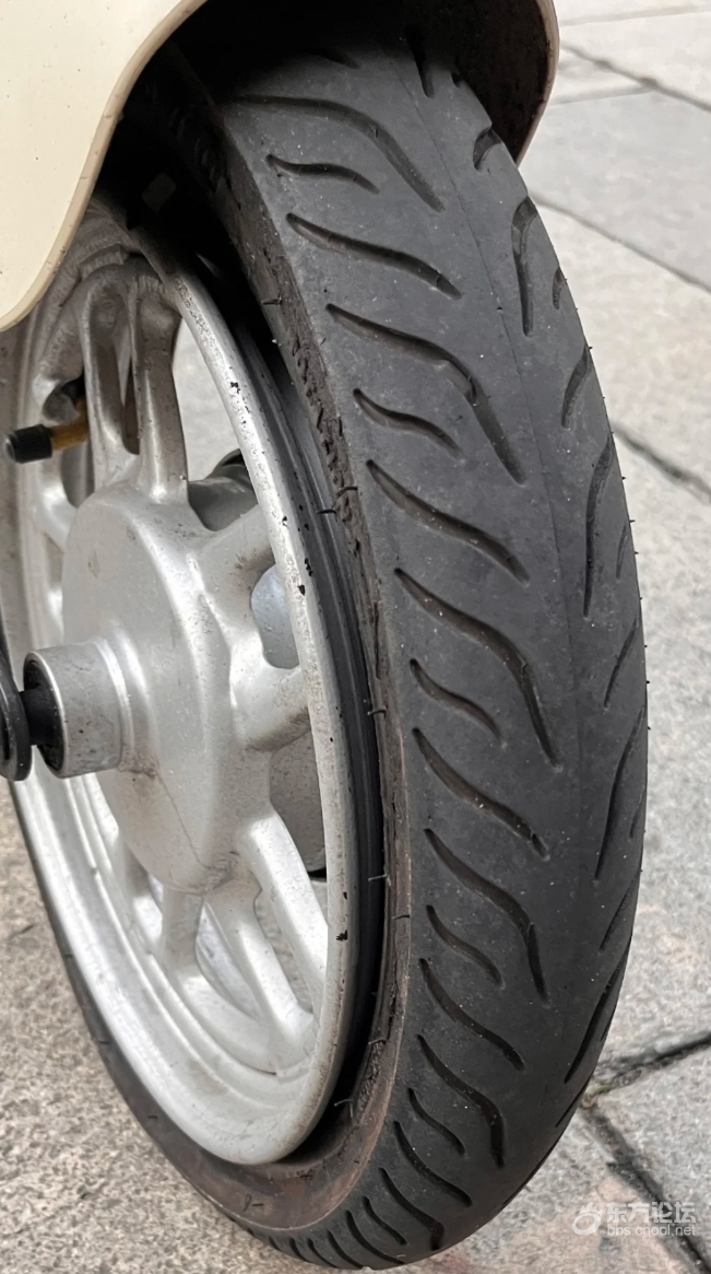 去年12月份买的电车,最近掉电挺快的,还以为电池出问题了。5点多骑车去吃饭,总感觉不对劲,一下车,胎齿分离了,还好骑得慢