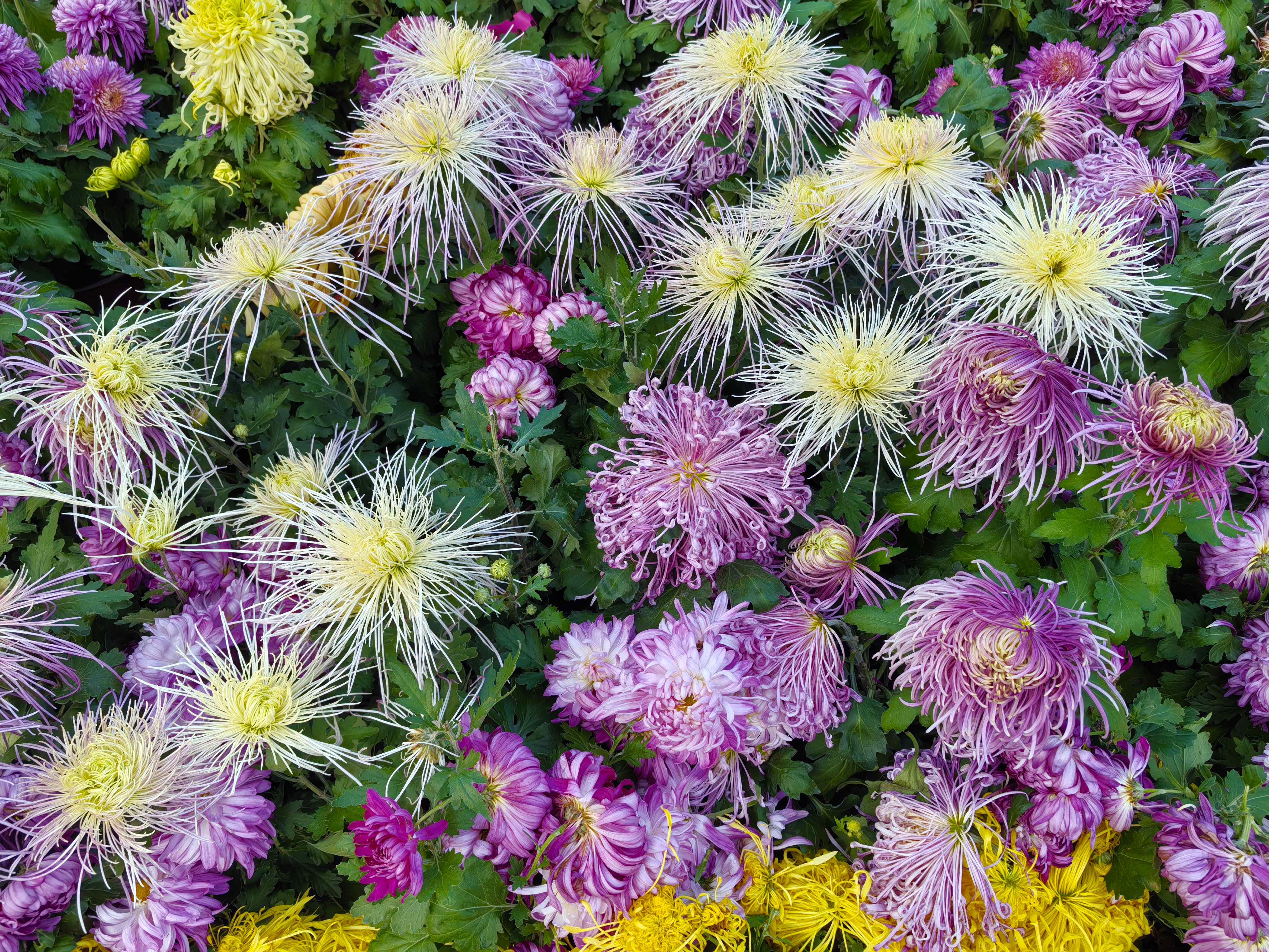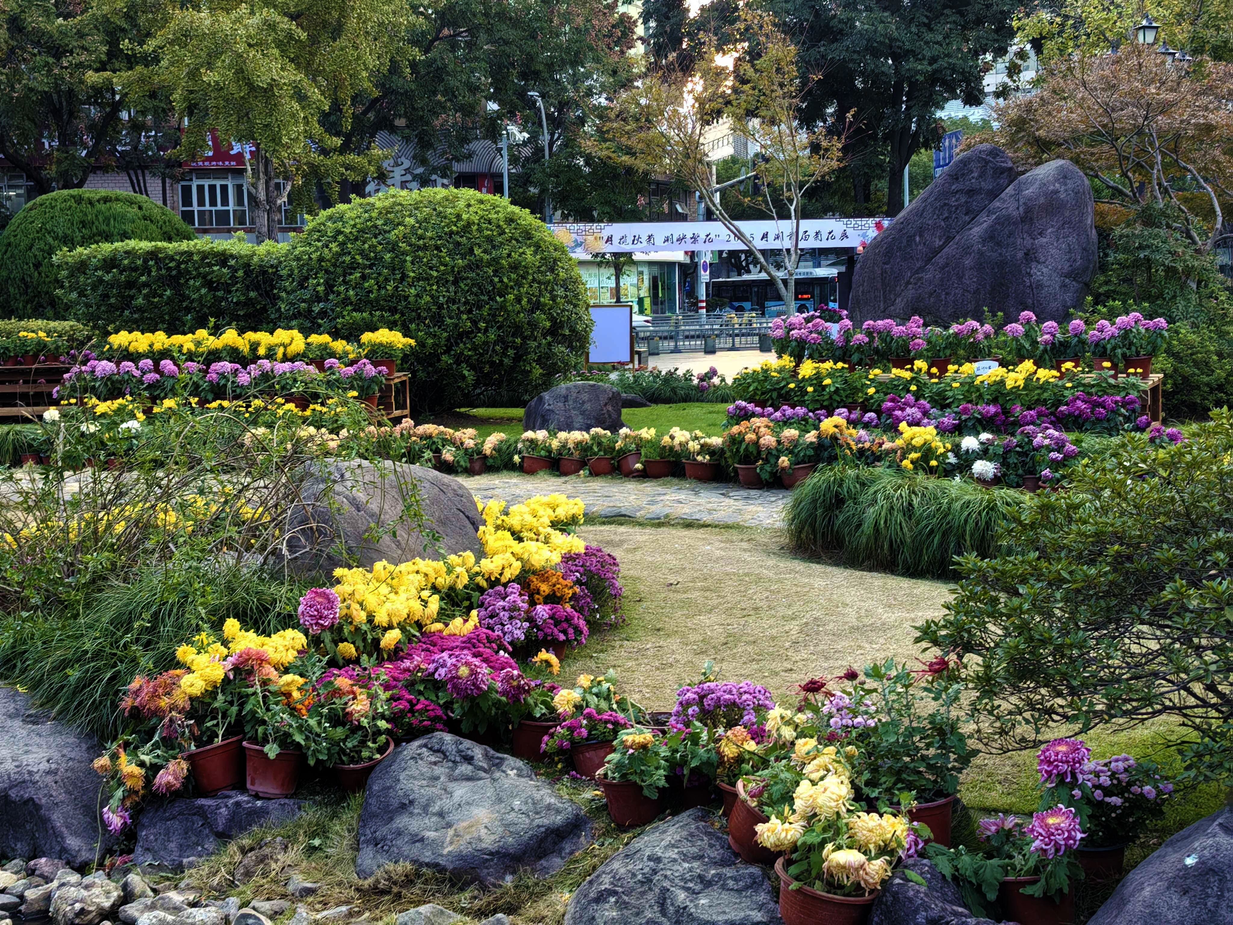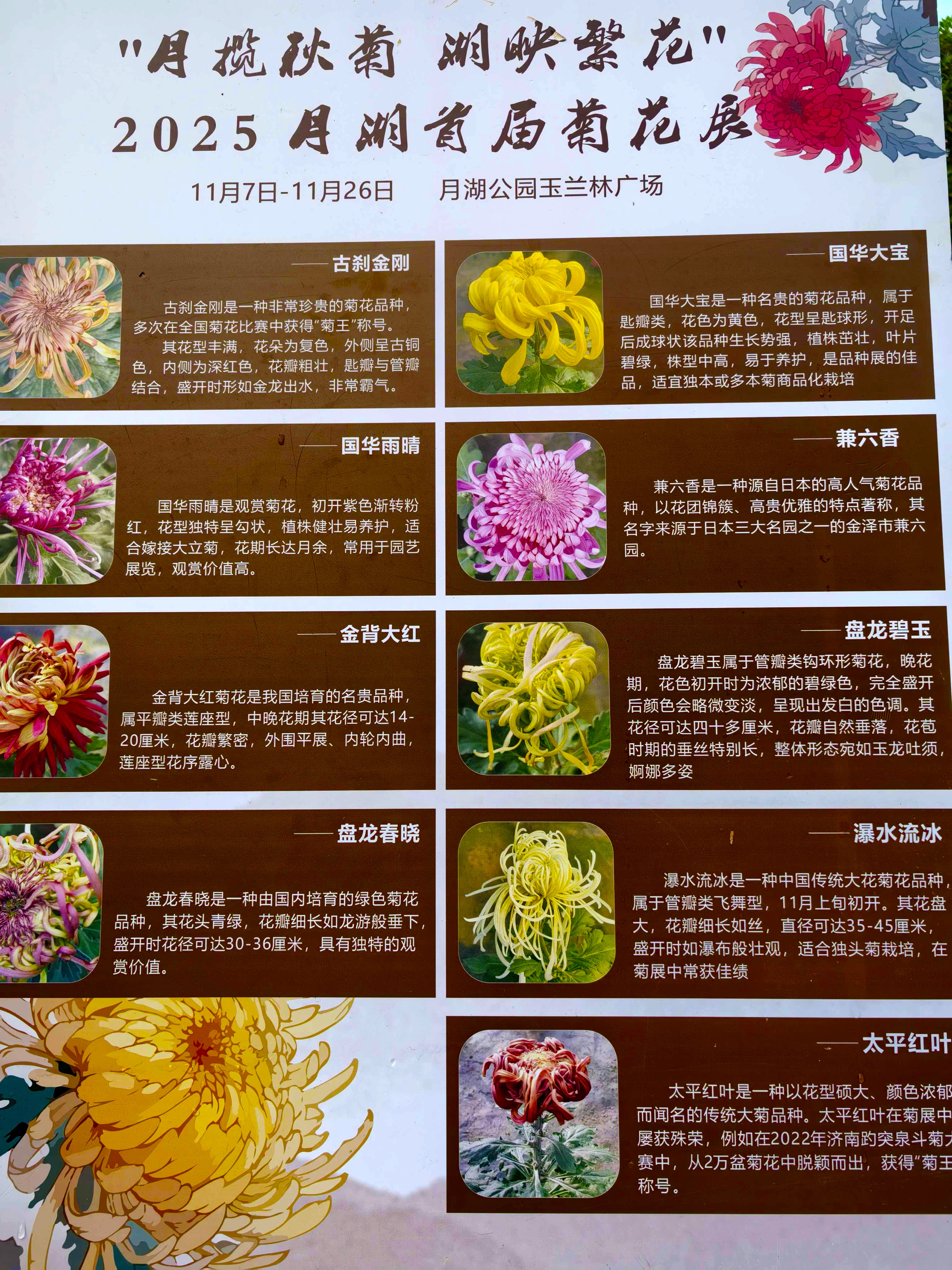 暮秋时节,月湖公园的菊花展正当时。踏入园区,便觉一股清冽的菊香裹挟着湿润的湖风扑面而来,驱散了秋日的萧瑟。沿路旁两侧各色菊花竞相争艳,将浓墨重彩与清雅素净揉碎在了这方天地里。