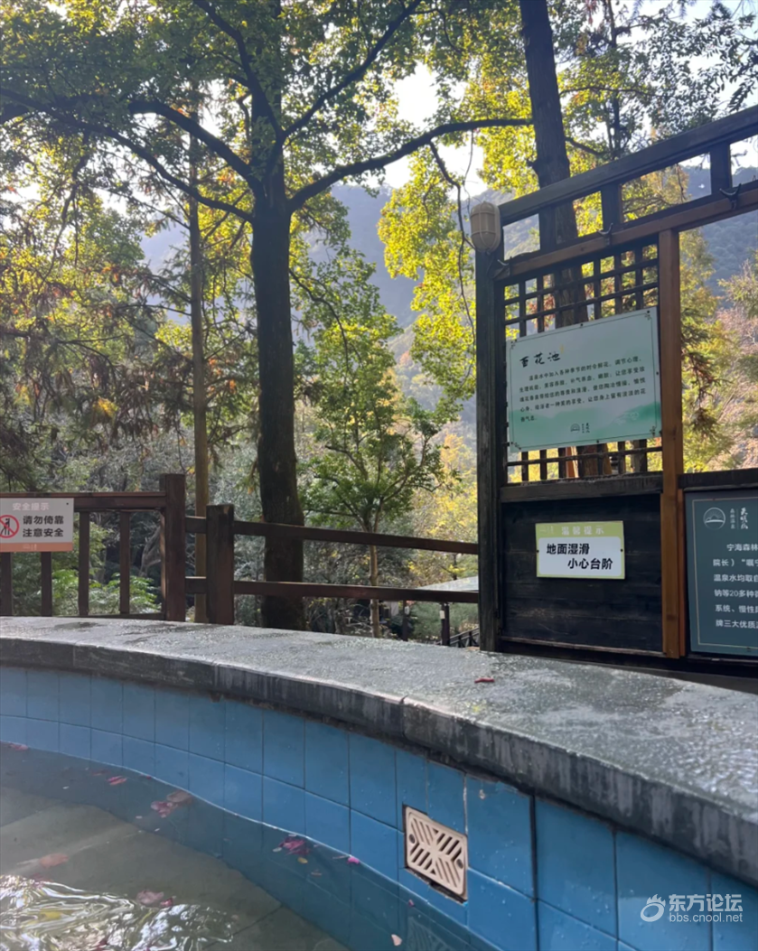 避雷宁海森林温泉!一个普通的周末来的,没想到人超多, 小的池子起码6个人,大的池子起码20个人, 总共也就没几个池子,泡了一会会儿就走了,实在觉得人多吵杂,环境太差,一点都不幽静! 人多的要命,还不卫生,有老头用池子里的水洗头! 还有很多男的在池子旁边抽烟,本来在山里就是图个空气清新,结果来闻烟味!