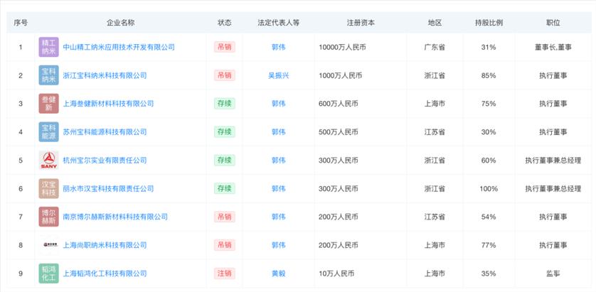 江苏科技大学首席科学家,材料科学与工程学院教授、博士生导师,国际纳米材料领域知名专家,俄罗斯工程院外籍院士——冠以诸多头衔的郭某,近日被举报涉嫌学历造假、学术不端、侵占国家科研经费等问题。 11月18日,江苏科技大学通报:经调查取证,认定郭某存在严重学术不端行为,已经按规定解除了与郭某的聘用协议,并对其团队师生进行了妥善安排。同时,学校第一时间向公安机关报案,目前案件正在侦办过程中。 19日,澎湃新闻记者致电郭某,其手机号已停机或关机。记者查询发现,在成为江苏科技大学教授之前,郭某是一位经营多家材料科技企业的商人。浙江省丽水市早年推出的《人才在浙丽》栏目曾报道过郭某的故事,视频中显示郭某的头衔为“全国优秀科技工作者、丽水市汉宝科技有限责任公司董事长”。 ![]() 《人才在浙丽》栏目报道。视频截图 在招聘网上,丽水市汉宝科技有限责任公司曾在2021年发布招聘帖子,招聘岗位包括技术总监、仪器分析测试工程师、产品设计工程师、材料开发工程师、产品销售经理、纳米材料顾问。其中多数岗位要求硕士和博士以上,纳米材料顾问则要求院士教授(柔性岗)。 在一篇《以纳米为尺,创新度量金属材料的未来科技——江苏科技大学首席科学家郭某教授》的公开宣传资料中,郭某宣称,“2020年,我们自主研制的一款新产品(高端能源装备关键配套材料应用于石油开采的新型高强高韧富β型钛合金油井管)一上市,就获得国内首批次供货销售订单2000万元的业绩,并逐渐在行业内站稳了脚跟。2020年,作为全国装备制造业新材料重点领域首批次产品,新一代产品应运而生,强度在1200MPa以上,具备更优越的可靠性、安全性,同时更加环保节能,填补了国内空白……” 郭某提及的“新型高强高韧富β型钛合金油井管材料”,也曾出现在丽水市汉宝科技有限责任公司的宣传报道上。浙江杭州未来科技城微信公众号2019年的一篇报道显示,挂牌入驻浙江人才大厦的丽水市汉宝科技有限责任公司,主要专注于金属材料梯度纳米结构关键技术的研发及应用,现阶段主要定位于研究新型高强韧富β型钛合金油井管材料的研发,研发成果将会应用在石油开采、运储装备配套材料等。该公司董事长正是郭某,公司注册地在丽水莲都,为招揽研发人才,办公室迁到了浙江人才大厦。 事实上,企业信用信息公示系统显示,郭某是7家企业的法定代表人,其中3家公司已吊销,包括中山精工纳米应用技术开发有限公司、南京博尔赫斯新材料科技有限公司、上海尚职纳米科技有限公司,还有4家公司存续,分别是丽水市汉宝科技有限责任公司、上海叁健新材料科技有限公司、苏州宝科能源科技有限公司、杭州宝尔实业有限责任公司。 ![]() 与郭某关联的企业。数据来源:天眼查 |