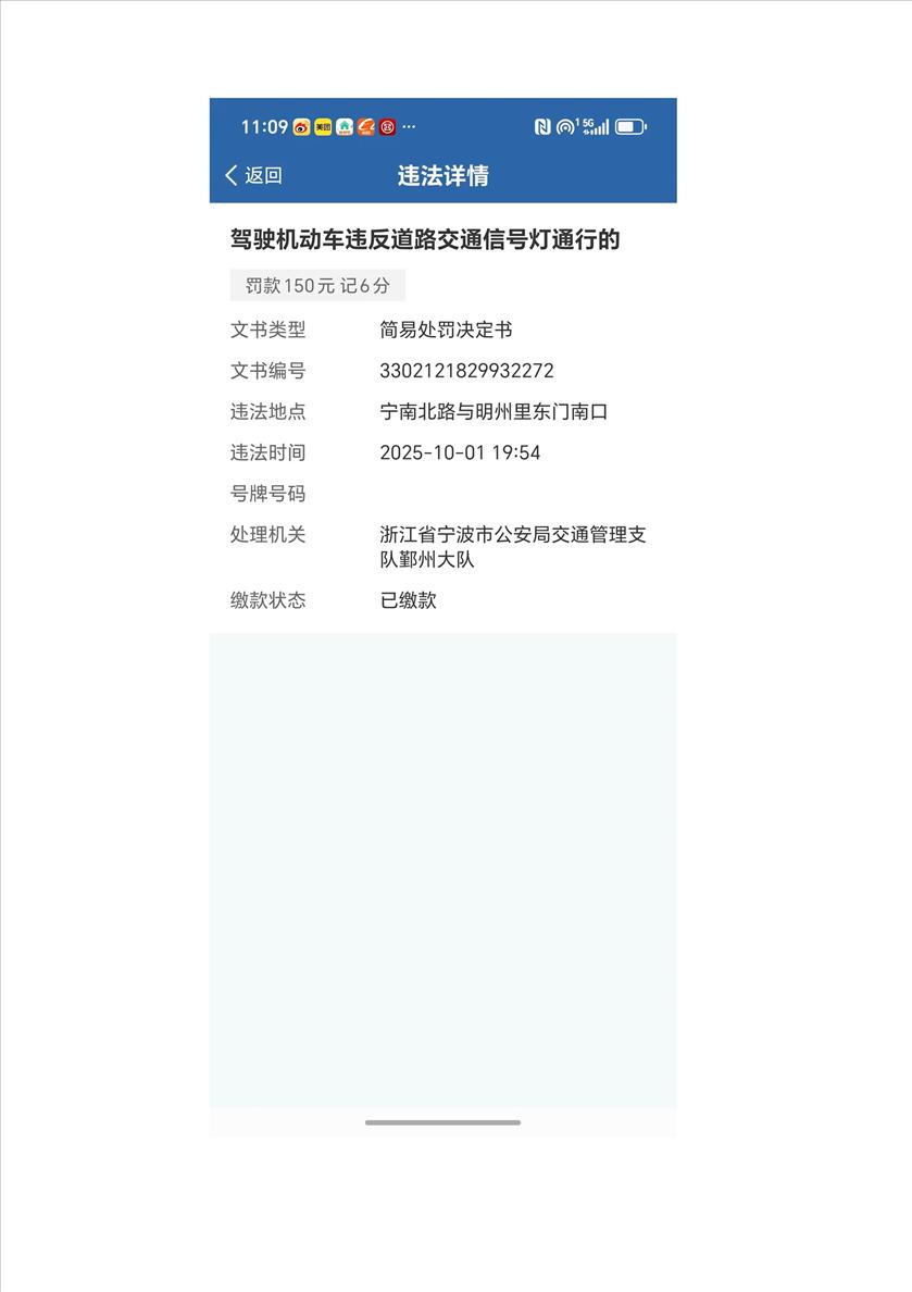 ![]() 2025年10月1日晚,万达广场用餐后从四明中路仓促调头后,经宁南南路返回罗蒙环球城路上,车辆过鄞州区万达广场与明州里间道路上人行道时,未见路上有行人,未曾特别注意红灯(宁南南路与四明路交叉到人行道估测80-100米新设红灯、有点昏暗,直觉设置不规范,应增加亮度?),直到驶近时见万达侧来人,急刹占了人行道(第一次闯红灯),让行人通过后。见后续行人有点多、车堵路,想让出行人道,而未曾注意红灯(第二次闯红灯),结果算是闯红灯。教训深刻了,来东论给驾驶员朋友发个贴提个醒,好避坑。一是礼让要行人、文明出行,我们得格守规矩,有错也得认罚;二是希望交警部门看得贴后,正视处此处道路人行道设置红灯的规范性、合理性,有3点共参考,一是离十字路口太近了、二是红灯光线太暗了,也得综合考虑驾驶员的反应能力,三是该处路权设置重罚的合理性。直接扣6分了事吗,下次作为外地同为交警的“同行”来此处也是要中招的?宁南南路是主路,万达广场与明州里人行道之间跨越宁南南路进出行人众多,一不小心就扣6分,有点过重了(太多数并非有意去闯、停了让出人行道,比如扣1-3分),扣6分是变相惩罚的,与文明城市建设不符。四是提醒这里经过车辆的驾驶员,宁南南路上驾驶要礼上行人,但注意过鄞州区万达广场与明州里间人行道时,这里有“巨坑”在等你。当心了!