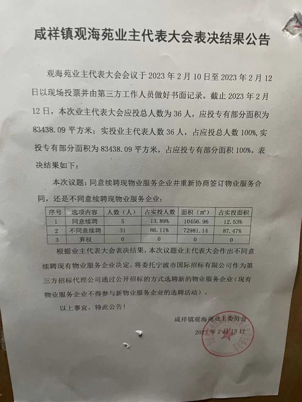 要求咸祥镇观海苑的业委会将120万的维修基金投票结果公开透明公正公平,相信网络的力量!从你们成立业委会后,前前后后在未知的情况下将全体小区业主维修基金86万多去向不明,帐目不公开,明细不透明!在没有进行公开投票的情况下业委会主任也是能来回换着当!从小区交付8年不到,每更换一次成员就更换一次物业公司。已经更换三家物业公司!这次物业公司才进场不到7个月不到,又要进行一次大更换消防系统和消防门。没在小区业主群500人数发通知的情况下开展2025年11月16日周日在小区投票,仅一天不到,业委会就委托给第三方(宁波甬光物业管理咨询)改成电话投票,将多位业主反应去电接听男业主占多数,电话也无法核实产证和身份证信息。不同意和拒接当骚扰电话拒接占多数。对方电话内容会用话术去引导男业主,拒知情人说,去电女工作人员通话时明确说,这次维修费用不需要你们出,从维修经费里出。(请问难道购房时的交付维修基金难道不是业主的钱?什么叫不用业主在出钱?)才短短几天就 着急着出投票结果,这是到年底了,急着批钱出来花是吗?