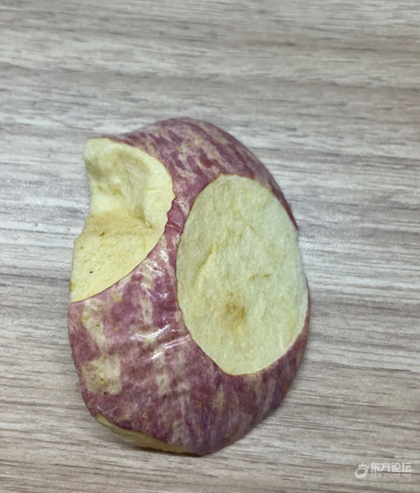 严重怀疑苹果冻干的质量,感觉就是把外皮坏掉的切开,看这半个苹果干,也太明显了,苹果冻干还卖得挺贵的,一袋三十多块钱,以后还是吃新鲜的吧。
