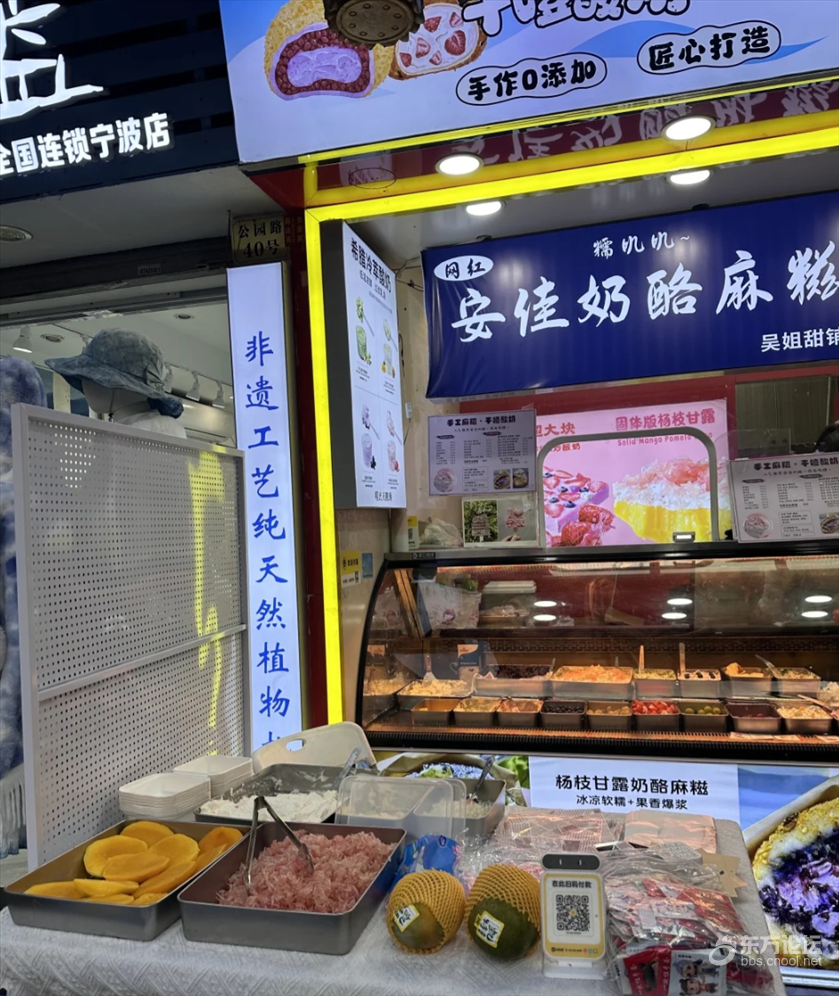 宁波鼓楼网红吴姐抖音上刷到好几次了,准备来买这个固体杨枝甘露,看到全部切好这样放着,也全部是露天的,也没有什么保鲜膜封起来,看到那个瞬间有点不想吃了,本来就在小吃街人来人往人超级多的。