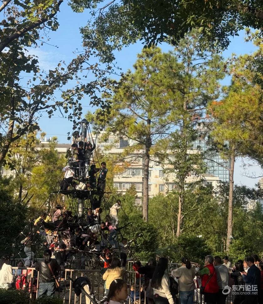 儿童公园长满了小孩,周末的儿童公园,到处都是人人人人人人人,攀爬架上就像是长满了小猴子一样,看着真闹腾。