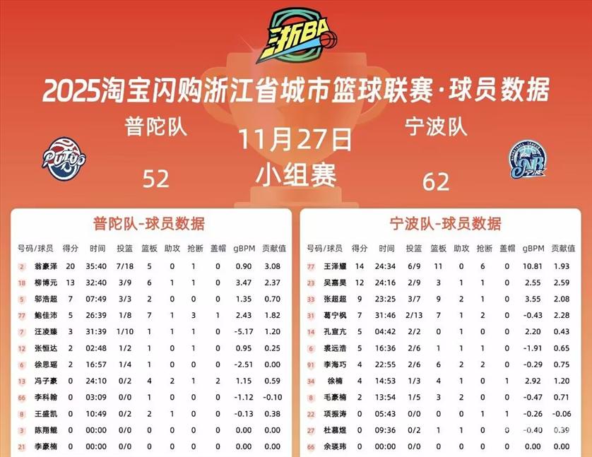 1月27日,“浙BA”赛场上演一场精彩的攻防对决,宁波队在普陀体育馆客场挑战普陀队。华中科技大学男篮主教练张劲松临危受命执教普陀队,与前八一队队友、宁波队助理教练李可同场博弈,为比赛增添诸多看点。最终,宁波队在核心球员张瀚缺席的情况下,凭借全程高强度防守与末节稳健发挥,以62:52击败普陀队,稳稳拿下这场客场硬仗。