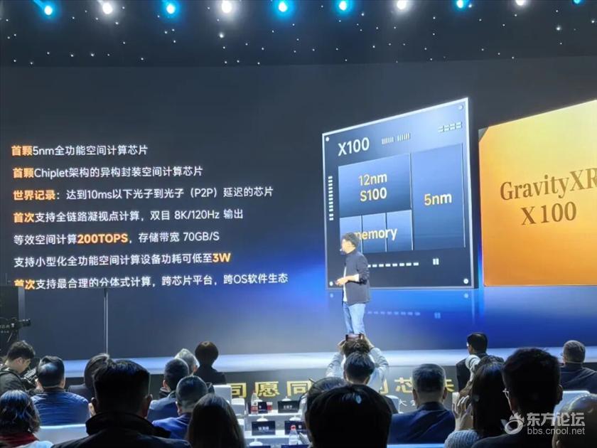 我国首颗全功能空间计算MR专用芯片“极智G-X100” 近日 宁波企业万有引力电子科技有限公司 发布中国首颗5nm(纳米) 全功能空间计算芯片 和空间计算全栈解决方案“极域” ↓ 11月27日上午,在2025空间计算产业大会上,万有引力电子科技有限公司正式发布我国首颗全功能空间计算MR专用芯片“极智G-X100”,以及面向生态伙伴的空间计算全栈解决方案“极域”。 万有引力联合创始人兼CMO王爽表示,这是中国首颗5nm(纳米)全功能空间计算芯片,公司也是全球唯一全栈空间计算解决方案提供商。