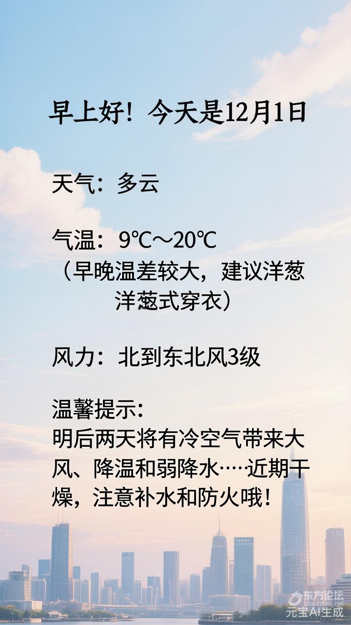 今天是2025年12月1日,星期一,农历十月十二。清晨的阳光洒满大地,新的一天悄然开启。十二月已至,2025年也步入尾声,愿你在这个冬日里:健康如常青树,岁岁平安;快乐似暖阳,洒满生活的每个角落;所愿皆得,所行皆顺,坏运清零,好运加满。早安,愿你的一天从温暖开始,以圆满结束! 🌞