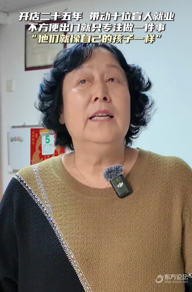 从2000年开始开始,宁波镇海的叶爱珍女士,陆陆续续叫了10位盲人到店里工作,她说“现在有4位盲人师傅,一个最长的有23年了,之前是宁波盲校叫过来的,他们如果没有这个工作,还是待在家里,我现在当他们是自己孩子一样。”