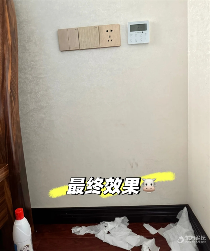 4块钱84消毒液就搞定了墙纸发霉。撕开了几张纸巾发现底下一点霉都没了,甚至旁边就喷到没铺纸巾的地方也恢复正常!!!剩下来的明天再撕了,不知道久一点会不会清理更干净。 所以真的太牛了! (大家记得通风,带口罩,还有手套)
