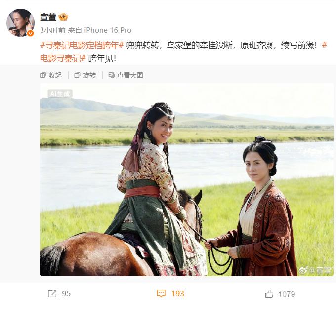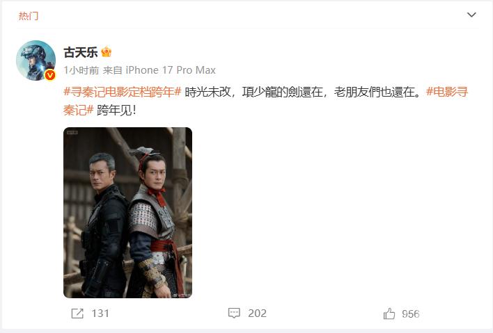12月10日,电影《寻秦记》官宣定档,将于2025年12月31日登陆全国院线。 ![]() 影片改编自黄易小说《寻秦记》,由古天乐担任总监制,吴炫辉、黎震龙联合执导,古天乐、林峯、宣萱、郭羡妮、滕丽名领衔主演。剧版《寻秦记》于2001年开播,成为当年的爆剧,被观众称为“穿越剧的开山鼻祖”,至今豆瓣评分仍高达8.6,稳居高分经典港剧榜前列。 ![]() 古天乐、林峯、宣萱、郭羡妮也纷纷发文。 ![]() ![]() ![]() ![]() ![]() ![]() ![]() ![]() 网友评论 ![]() ![]() ![]() ![]() ![]() ![]() 燕儿ོྂཾ࿆࿐ོ:我死去的记忆又回来了,姐准备青回一次。 @好运喷雾每天三下:好经典,小时候电视上看过诶。 @喃喃数星:这么多年 终于等到了,期待。 @成74572:期待到不行,项少龙久违了。 此前电影版《寻秦记》曾亮相第八届浙江国际青年电影周“未来在映”新片发布会,主创团队表示在保留剧集精髓的基础上注入新想象力,力求吸引新一代观众。 ![]() 电影版《寻秦记》改编自黄易先生同名小说,由浙江华策影视股份有限公司、天下一电影制作有限公司、华策影业(天津)有限公司、中国星电影有限公司、深圳市潮人传媒有限公司、武汉传奇人影视艺术有限公司出品,北京古天影视制作有限公司、大名娱乐有限公司、上海华策电影有限公司、北京微梦创科网络技术有限公司联合出品。 |