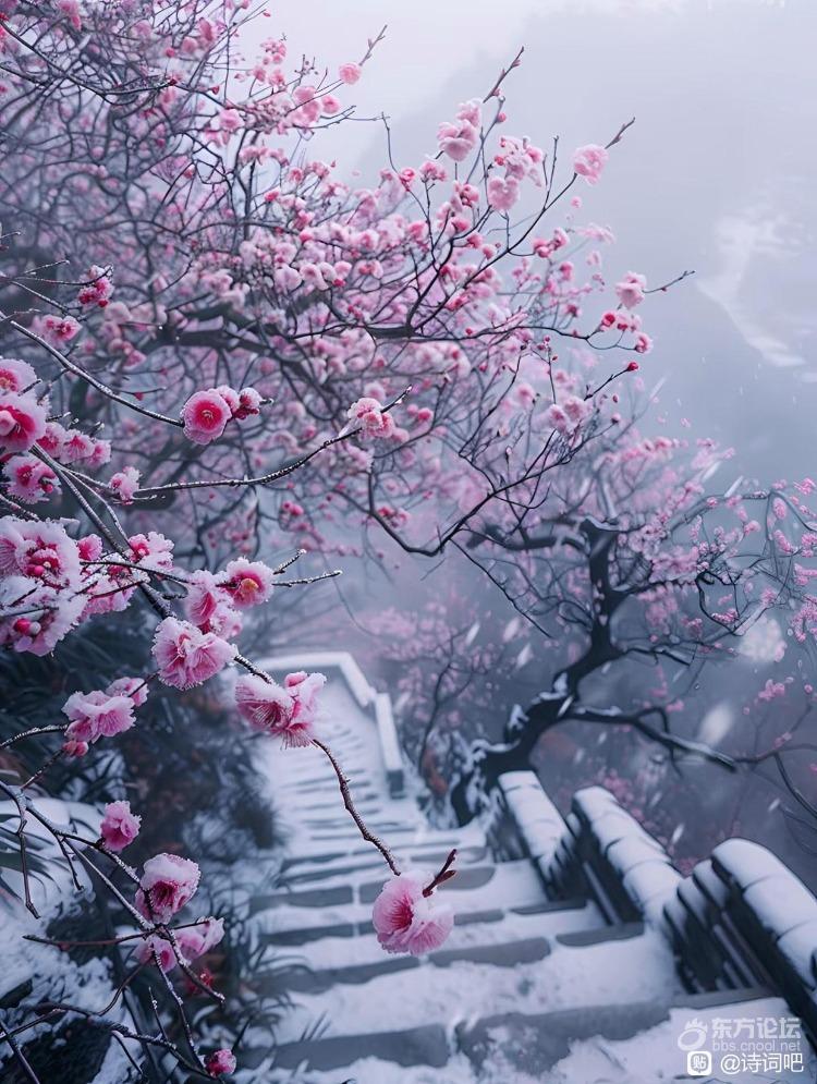 鹤影衔霜涂绛雪,虬枝噙月铸冰胎。