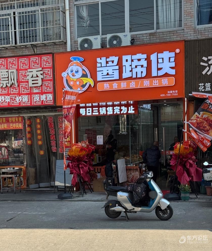 中午外出觅食路过,广告很响,新鲜出锅,当天现卤,不争气就进去看看了。顾客就我一个,还有一个门口坐着的抖音直播卖货,然后就买了点猪耳朵和一个猪蹄。不合口味。不如菜场那些卤味。不像新鲜买来猪蹄等现卤的,进去前没注意是加盟店。猪耳朵一点不脆,有一点点烟熏味。猪蹄也硬,都冷很久了,不加热下不好啃,也有点烟熏味,味道估计和超市一包包的老李猪蹄差不多,吃了一块就劝退了。这店新开的,东西不好吃,还加盟店,估计开不了多久。