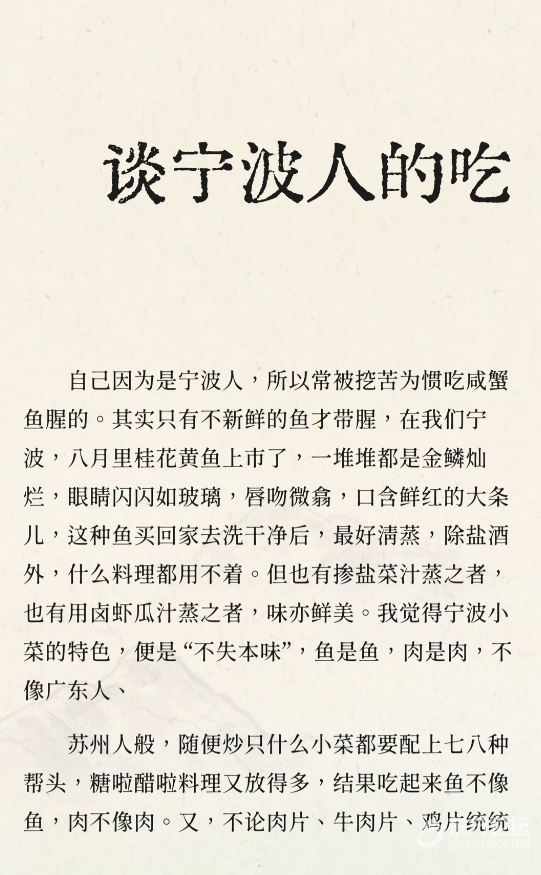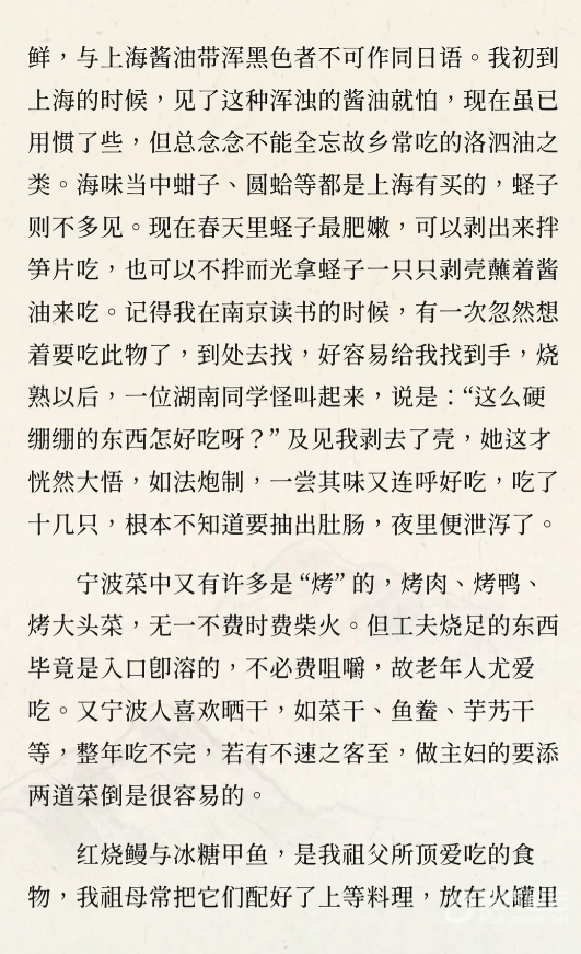 宁波菜注重本味,清蒸黄鱼、盐烤笋、盐蟹等保留食材原味。宁波人讲究“不失本味”,不加过多调料,强调食材新鲜。宁波菜以笋、豆类为主,咸蟹、青蟹为特色,烤肉、烤鸭等烹饪方式独特。