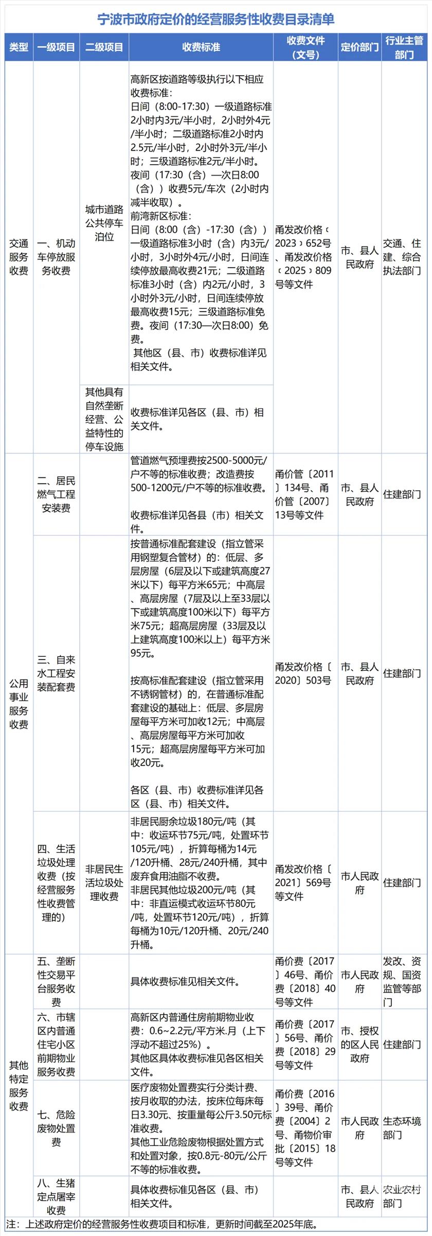 近日,市发改委公布《宁波市政府定价的经营服务性收费目录清单(2026年版)》,涉及居民燃气工程安装费、自来水工程安装配套费等内容。