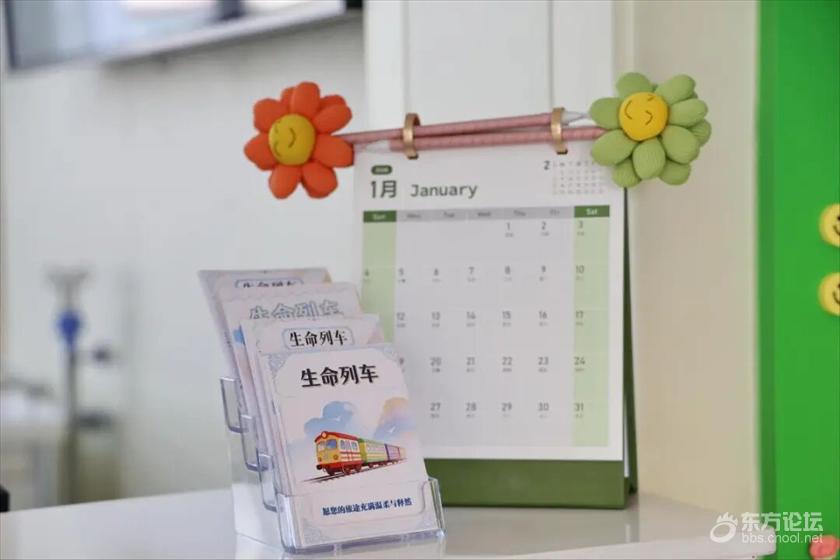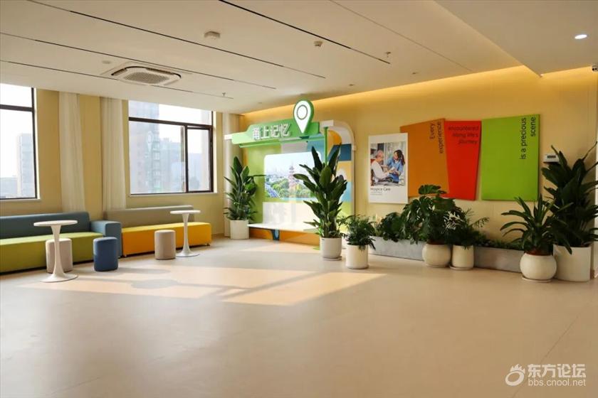“生命列车”的概念贯穿病区 走进病区,“生命列车”的核心理念贯穿始终。这个由上海某高校团队参与设计的环境体系,创新构建了一条完整而连续的场景动线:从追溯往昔的“甬上记忆”,到静心梳理的“人在旅途”,再到温暖中转的“彩虹月台”,继而进入平静安详的“告别之旅”,最终驶向精神寄托的“时光车站”,并延伸至家属互动支持的“共创工坊”。每个空间既独立承担特定功能,又彼此紧密衔接,串联起生命不同阶段的情感与需求,在细节中传递深厚的人文关怀。 记者在病区内参观发现,诸多细节设计尽显人文温度:墙上的留声机卡片是由患者及家属录音生成的二维码,他们能借助这种方式留存心声、表达情感。在空间规划上,病区充分兼顾不同人群需求:成人标准病区注重宁静与私密,营造家庭化氛围;儿童病区采用明快色彩与安全防护设计,让患儿在温馨安全的环境中接受疗护。同时,沐浴室、活动室等公共区域均完成无障碍与适老化改造,全方位践行全人关怀理念。