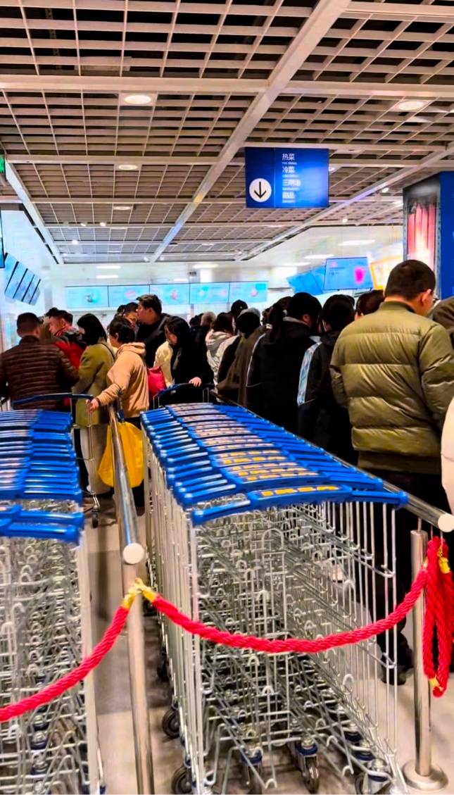 “家人们谁懂啊!宁波宜家2月1日最后一天营业,早上8点门口就排起绕场长龙!货架被搬得七零八落,毕利书架直接从展示区拆下来抬走,有人拖着马尔姆抽屉柜往外冲,这阵仗比抢年货还疯狂!”
