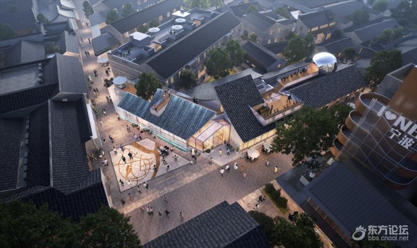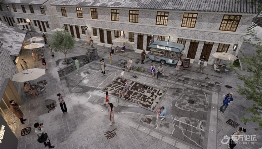 宁波秀水街项目图。 广场二(桂芳巷旁):靠近桂花厅,是街区内部最大的广场,也是秀水街区的核心广场和直街商业的高潮节点。此处将结合桂花厅及周边新建商业,打造古今对话的时尚秀场,运用多媒体技术创新手段,为游客提供全方位的感官新体验。