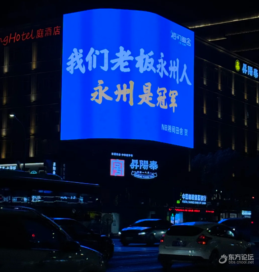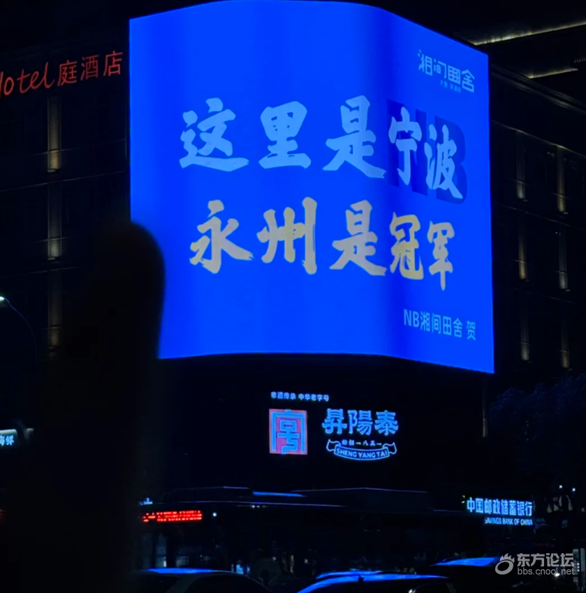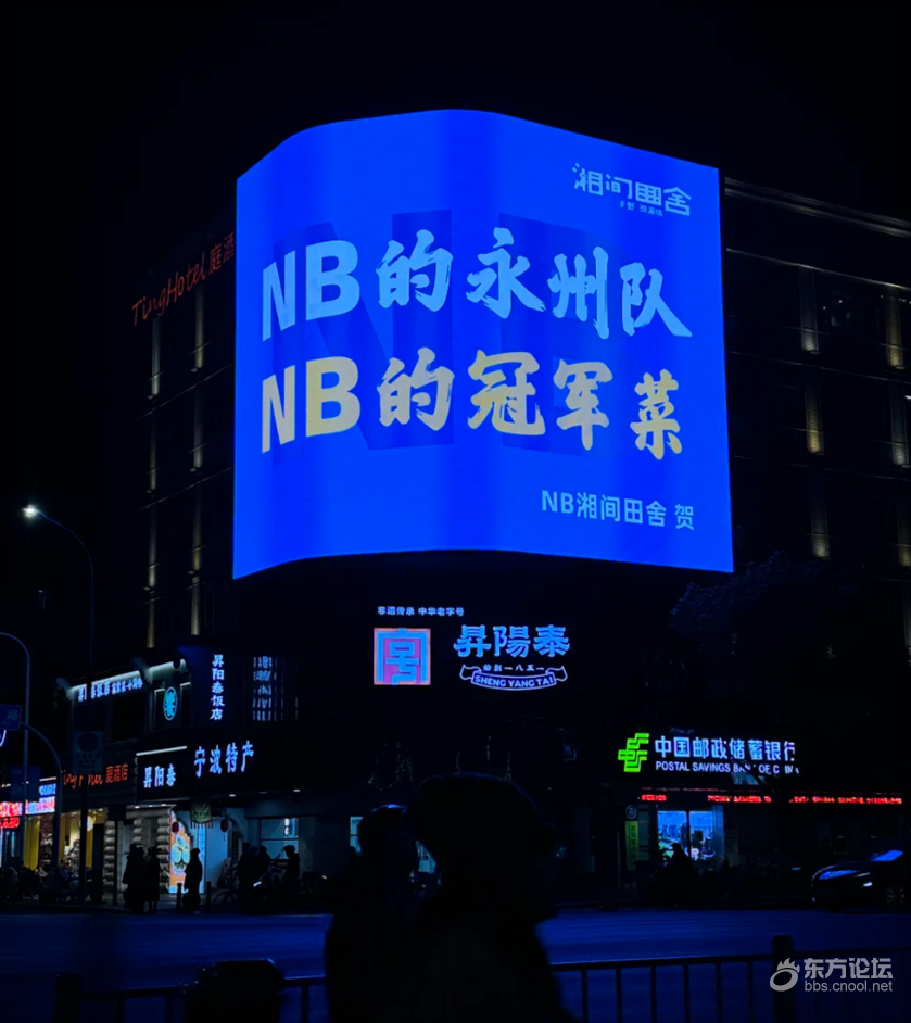 永州队太NB了!,宁波真是大城市! 鼓楼对面的3D大屏就有冠军应援! 湘间田舍的老板也是很NB! 直接承包大屏为家乡队打call! 它家还有冠军队冠军同款湘菜!这排面属实拿捏住了!