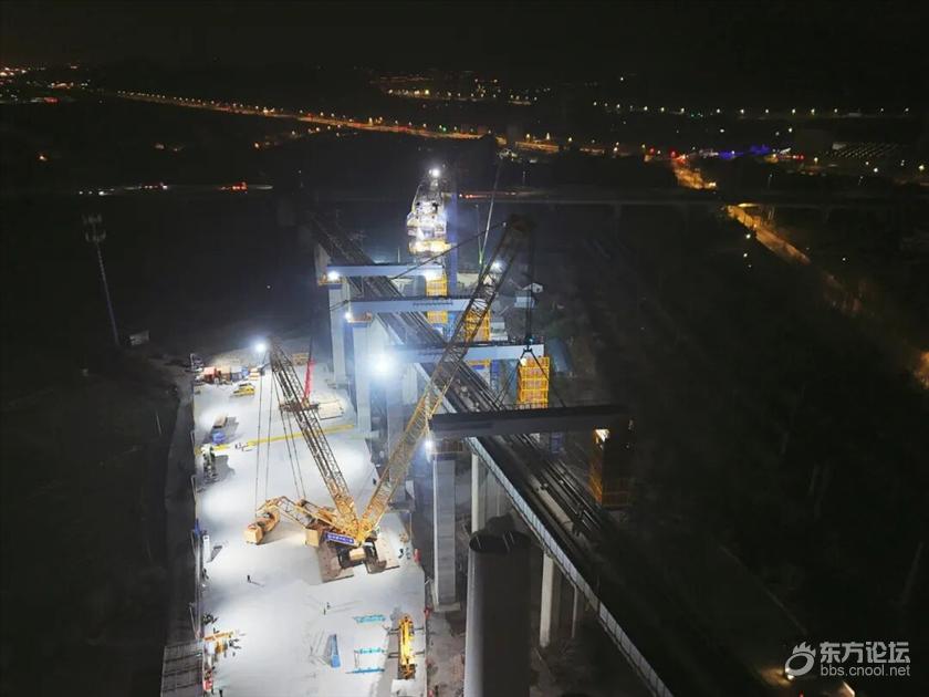 日前 在江北通甬高铁建设现场 随着跨宁波绕城高速特大桥99#墩钢横梁 精准落入支座 标志着由中铁二局承建的通甬高铁项目 跨宁波绕城高速特大桥96-99#墩钢横梁 架设顺利完成 项目取得阶段性进展 ![]() 建设现场 据悉,此次架设的钢横梁要上跨杭深线桥梁段,跨度30米,吊装重217.23吨,高度34.6米,作业半径30米,且需要利用4个Ⅱ级封锁天窗施工,吊装吨位大、高度高、半径广,施工时间紧、难度大、风险高。 ![]() 通甬高铁宁波绕城高速特大桥夜间建设现场 为保障施工,项目部提前准备。成立专项工作组,编制方案和预案并经专家论证与上海铁路局批准;对关键岗位人员开展安全技术培训,明确操作规范和应急程序;做好大型机械“一机一人”防护,严格确认安全条件;提前和配合单位对接,办好封锁施工手续。施工时,各方全程盯控,技术与安全人员旁站监督,精准把控每个细节。 ![]() 建设现场 通甬高铁是“八纵八横”沿海通道的重要组成部分,自南通西站引出,途经江苏南通、苏州,浙江嘉兴、宁波,终至宁波站,新建线路301公里,设计时速350公里,预计于2027年底通车。通甬高铁建成后,将与盐通高铁、沪昆高铁、宁波至台州至温州铁路等多条线路相连,对于打造“轨道上的长三角”,完善区域路网结构布局,方便沿线人民群众出行,助力长三角一体化高质量发展等具有十分重要的意义。