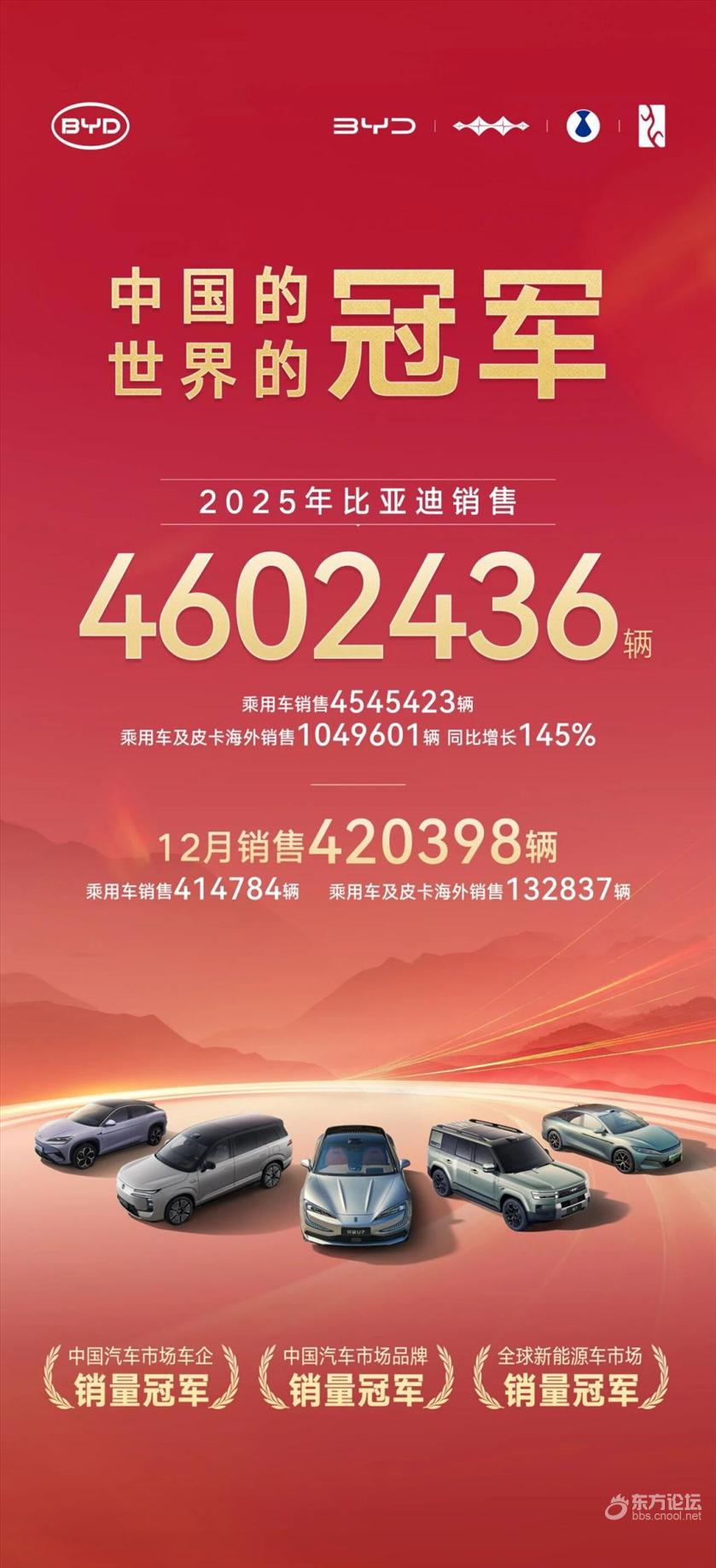 2024年全球销量:丰田--1082万辆,比亚迪--427.21万辆。2025年全球销量:丰田--1011.1万辆,比亚迪--460.2万辆。