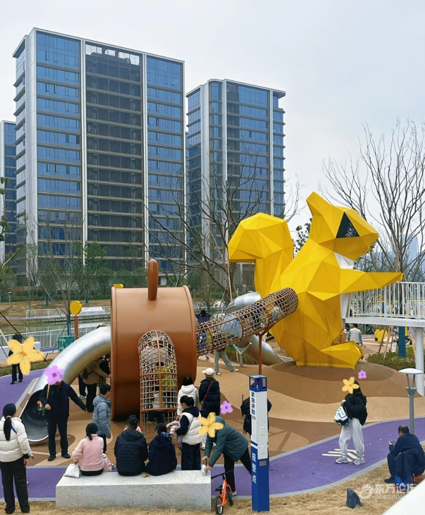 最近去东部新城这边,在这边发现了一个免费的儿童公园,有攀爬架、攀岩墙、秋千、摇摇马、跷跷板,经典项目一站式集齐,超长骑行泵道,附近就是东部新城的城市会客厅,可以看小动物,发现现在宁波市区免费的儿童公园越来越多了,真不错。