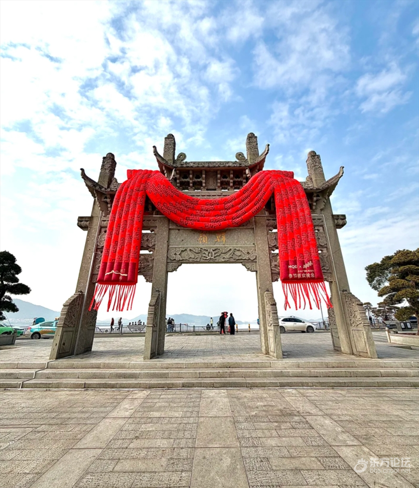 最近去东钱湖,发现东钱湖也有了“新皮肤”,围了一条火红的大围巾,喜气洋洋的。