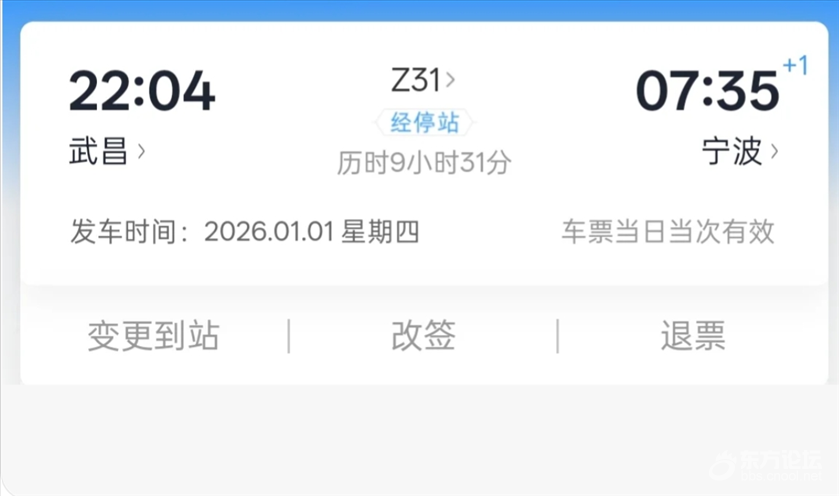 从2026年1月26日起 ,再也没有这趟武汉直达宁波车了,之前去武汉那边出差坐了三年 ,孩子去武汉读书很多时候也是坐这趟车的,都是睡一觉醒来就到了终点站 ,再见了Z31、Z32,是多年的老朋友了,时代在变化,很多东西也渐渐成回忆了。