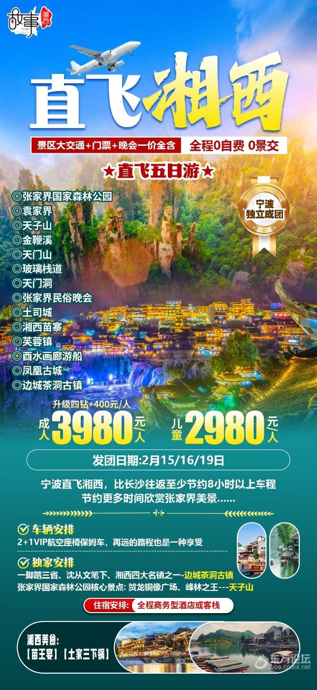 直飞湘西(春节宁波独立成团)🛩宁波直飞湘西边城(相当于直飞张家界)一价全含~0自费~0景交🏡全程安排当地商务型酒店或客栈🚙豪华2 1航空座椅空调旅游大巴车🔥一🦶踏三省--边城茶洞古镇班期:2月15/16/19(铁发)