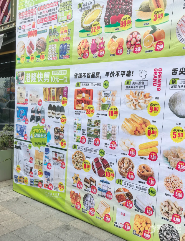 高新区最大的生活超市明天开业啦,后面几张是海报上贴出来的价格,看了一圈还是挺划算的,肉类烘焙和水果价格都挺便宜。门口还有加群免费送鸡蛋的活动,很多人排队在领。六号线也可以直达港隆广场,3000多平的面积也是整个高新区最大的了,希望便宜价格能多持续几天。