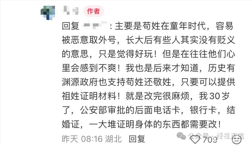 ![]() ![]() ![]() ![]() ![]() ![]() 苟先生曾表示:“我们不是随便改第三方姓。”听说苟姓是由“敬”姓演变而来,且家族里有人姓敬,所以长辈们同意改“敬”姓。 ![]() 据公开报道,苟姓改敬姓并非孤例。在河南荥阳曾有苟姓村民集体改姓,河南登封上百名苟姓村民借鉴他们的做法,也进行了集体改姓。此后,全国多地陆续有苟姓居民成功改姓,但也有被拒案例。 据了解,敬姓为中国传统姓氏,最早可追溯至黄帝玄孙姬敬康,后衍生出妫姓分支。后晋时期因避高祖石敬瑭名讳,敬姓改为苟姓或文姓;北宋时因避赵匡胤祖父赵敬之讳,部分恢复的敬姓再次改回文姓;南宋时期又因避宋高宗赵构名讳,苟姓读音被改为上声,部分族人弃姓。清朝乾隆年间,四川南部县苟化兰因进士殿试被赐改敬姓,此后该地苟姓普遍改为敬姓。 姓名可以随便改吗?律师解读 北京德和衡律师事务所高级合伙人马丽红律师表示,根据《中华人民共和国民法典》,自然人享有姓名权,有权依法决定、使用、变更或者许可他人使用自己的姓名,但是不得违背公序良俗。自然人应当随父姓或者母姓,但是有下列情形之一的,可以在父姓和母姓之外选取姓氏: 公民在申请改名时,首先要符合户籍管理部门的规定流程,且不能因改名逃避法律责任、债务等;其次,名字不能违背公序良俗,如含有侮辱性、违背社会道德等不当内容;还应避免因频繁改名造成行政资源浪费、扰乱户籍管理秩序。 四川皓锦律师事务所合伙人李勇律师表示,按照《中华人民共和国民法典》的规定精神,公民申请更改姓名不应附加任何条件。因此,公安机关在制定行政规章时,不能仅考虑公共行政权力,还要考虑整个法律体系的一致性。若符合法定条件仍被拒绝,公民可向上级公安机关提出行政复议或提起行政诉讼。 |