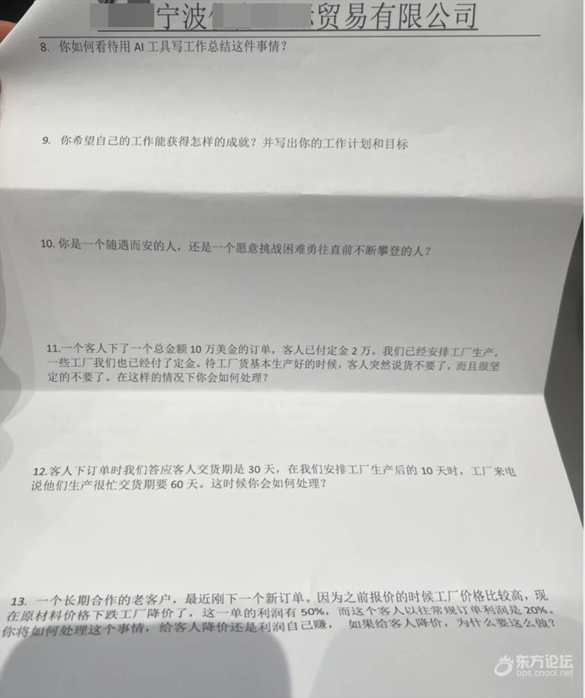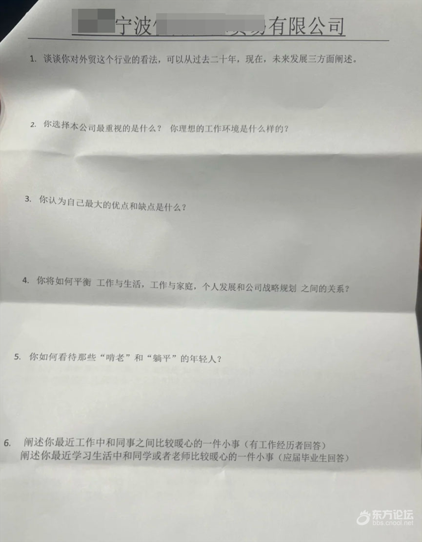 宁波一公司面试要填三页纸的问题,你会写完这些问题吗  [复制]