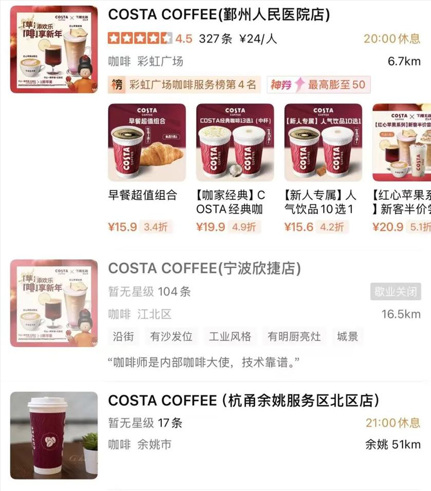 COSTA咖啡曾经也是与星巴克齐名的连锁大牌子。 但最近,东论网友@loezy发现,宁波市区的COSTA门店又关了一家,现在只剩下一家了。 ![]() 可以看到,关闭的门店是江北欣捷店。 ![]() 而目前剩下的则是鄞州人民医院店,以及余姚服务区的一家店。 ![]() COSTA咖啡由Costa兄弟于1971年在伦敦成立,2006年底进入中国市场,首店开在上海。 在宁波也曾开出过多家门店,比如宁波站出发层、江荟151商场一楼(原东方商厦)、鄞州人民医院住院部、宁波印象城。是宁波的各大热门商圈的常客。 同时,也是是很多咖啡爱好者的回忆。 ![]() ![]() 对于COSTA咖啡的现状,有的朋友觉得,是因为该品牌在细节上不如竞品品牌。 ![]() 但更多的朋友却是表示怀念,COSTA有很不错的单品,不希望门店越来越少。 ![]() ![]() ![]() 不过,无论大家再怎么不舍得,现阶段COSTA门店的越来越少也已成了事实。而COSTA的故事也让人想起了另一个品牌,咖啡陪你。 同样是一时间爆火,再慢慢走到销声匿迹。 ![]() ![]() 图片来源:小红书 只能说,在实体店竞争越来越激烈的当下,一个品牌能够长久生存,跟它本身的质量、宣传、供应链、服务等等方面都息息相关。 对于COSTA,我们也相信当下的现状不会是终点,毕竟还有很多喜欢他们的顾客在等待。 你记忆中还有什么“昙花一现”的品牌吗?欢迎评论区一起聊一聊。 欢迎留言讨论 |